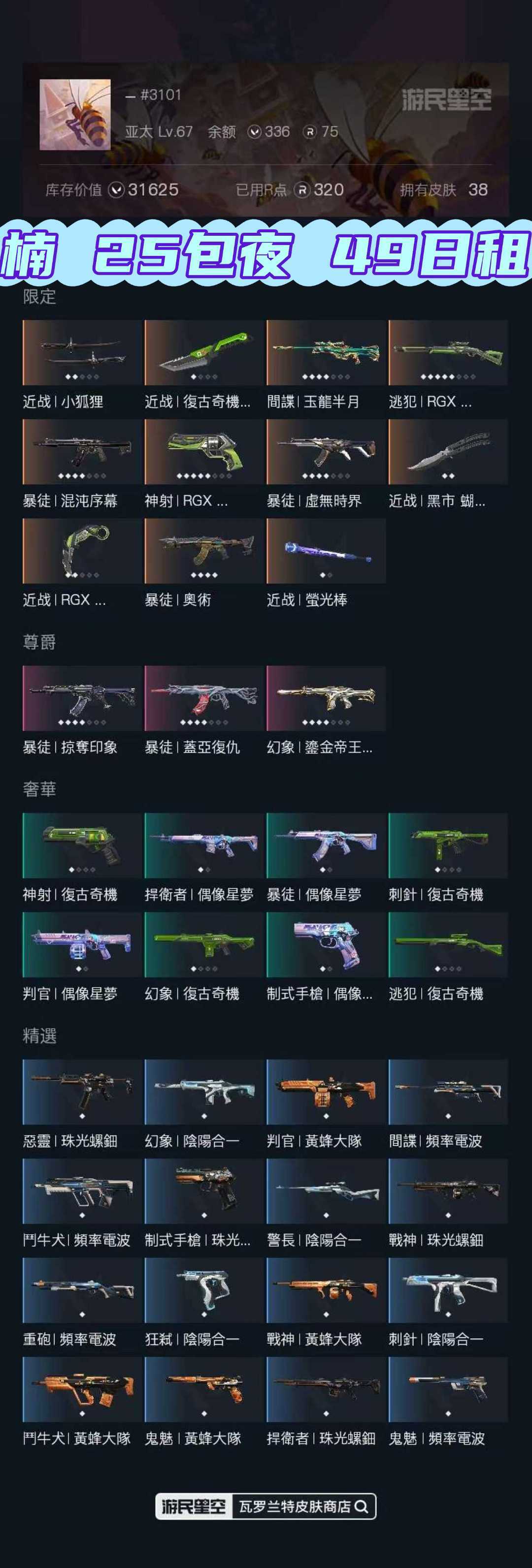 注意事项: ✨加速器没问题的情况下登录三次登录不上时请关闭游戏客户端断开加速器重新打开重新登陆,密码不会错,尝试后还登录不上请不要继续登录 ✨van152是封禁机器码,届时请直接撤单不要继续登录:VAL其他多数为加速器不稳定网速不稳定请勿重复登陆密码不会错的 ✨游戏过程中请不要恶意挂机或者不文明发言,恶意挂机、顶号等行为将被拉黑无法再次下单 .喜欢本账号请点 ☆收藏☆ 方便下次租用,谢谢光临惠顾 【此号已在吉林省长春市新春街派出所做了虚拟财产登记并备案】 【根据《刑法》第二百七十五条 故意毁坏公私财物,数额较大或者有其他严重情节的,处三年以下有期徒刑、拘役或者罚金:数额巨大或者有其他特别严重情节的,处三年以上七年以下有期徒刑】 【开挂必与平台追究到底文明游戏,禁止挂机顶号希望大家玩的开心,生活愉快】