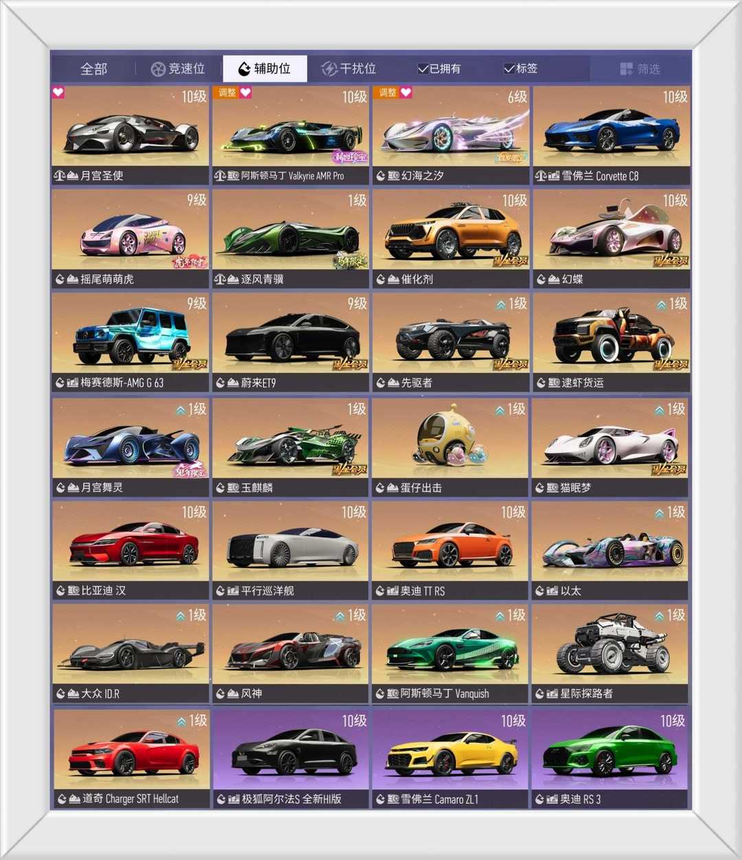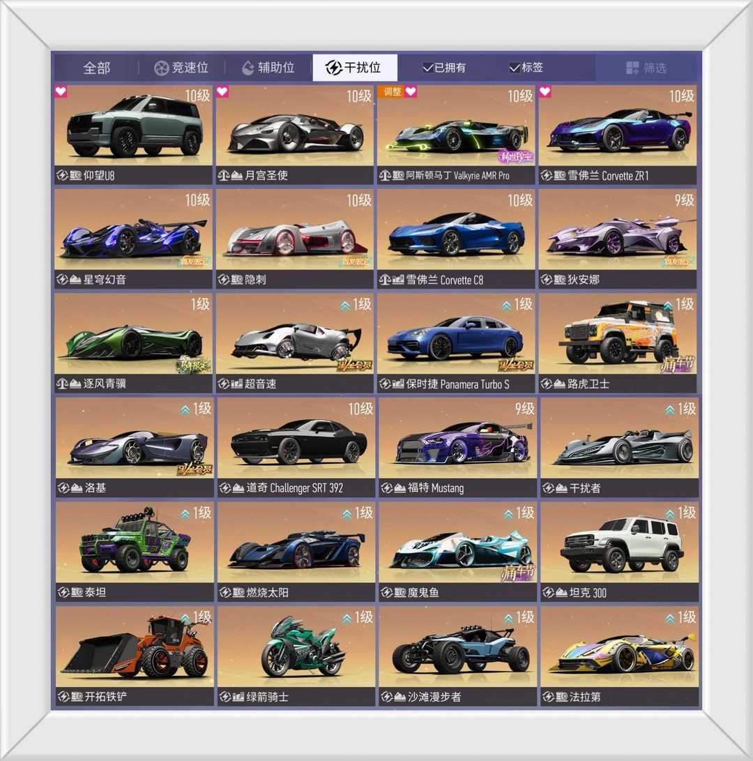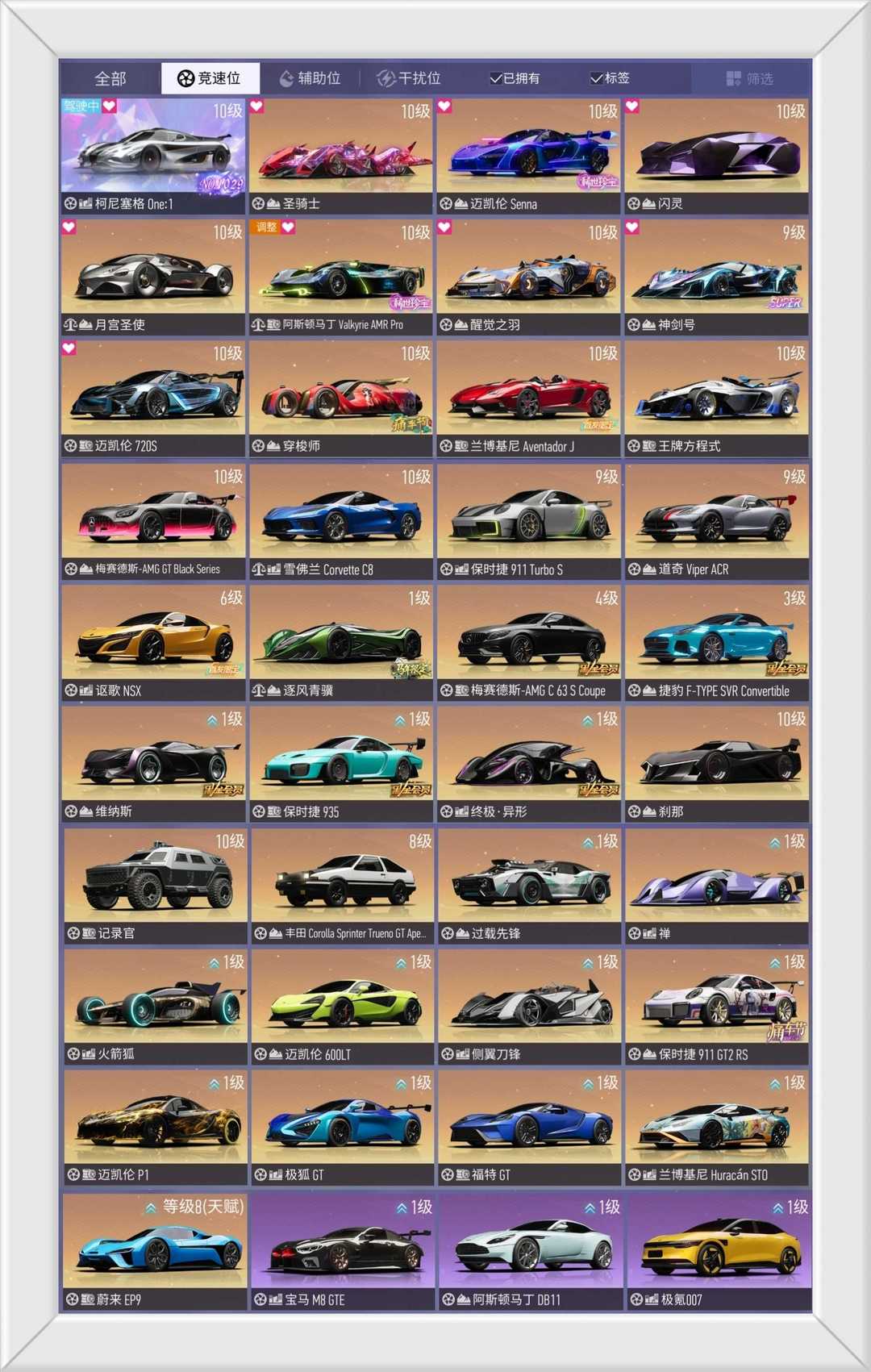 ⭐圣骑士⭐迈凯轮Senna⭐闪灵⭐仰望U8⭐月宫圣使⭐️阿斯顿马丁Valkyrie AMR Pro⭐觉醒之羽⭐️迈凯轮720S⭐雪佛兰Corvette ZR1⭐星穹幻音⭐隐刺⭐穿梭师⭐兰博基尼Aventador J⭐王牌方程式⭐️梅赛德斯-AMG GT⭐雪佛兰Corvette C8⭐️催化剂⭐幻蝶⭐比亚迪汉⭐平行巡洋舰⭐️奥迪TT RS⭐️道奇Challenger SRT 392⭐️刹那⭐️记录官⭐️