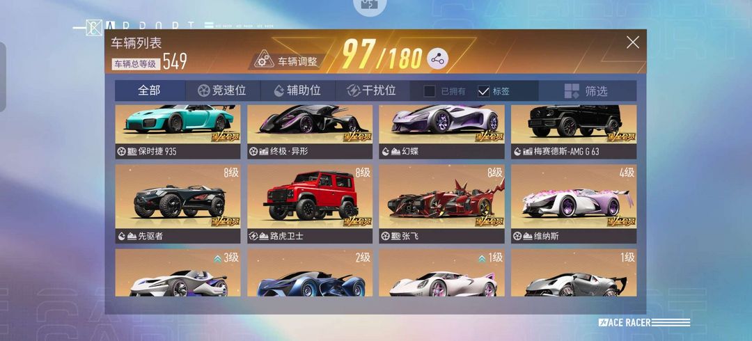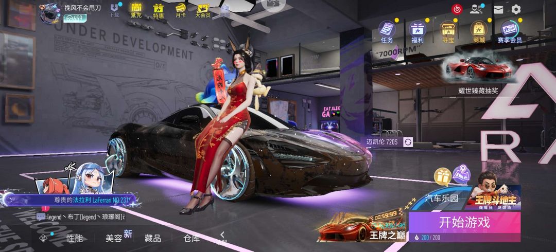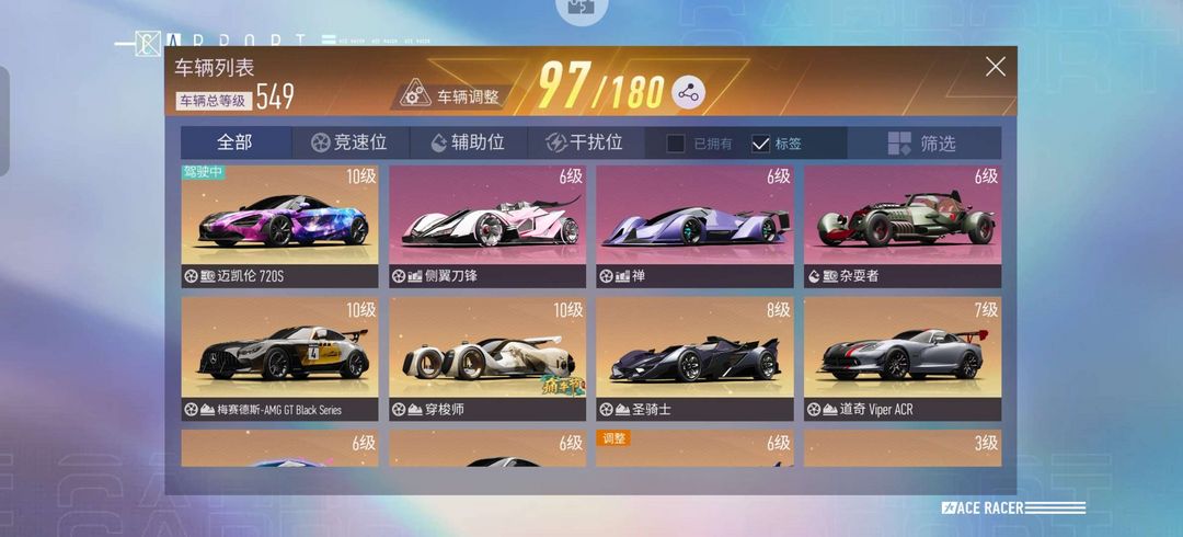97辆豪车54套时装 10级迈凯伦 多稀有特效车 549车辆总等级 265.2万货币