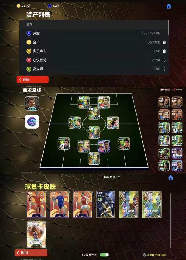 苹果3320战力,bt决胜高光c罗,全是5闪,最新的卡都有。嘎拉梅西已经5闪。
