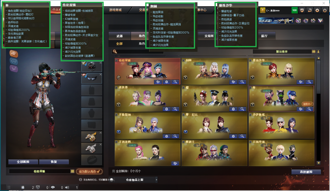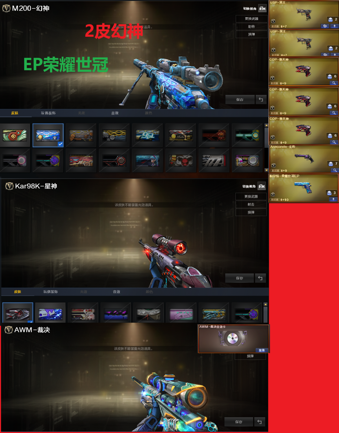 排位禁 赛,先玩其他模式。过几天就可以打了------------ 生化全装(生化背包、可以查看僵尸血量)无需换弹、6烈、4盘龙、3炼狱、异变清道夫-小人枪、死亡之眼、MAC手枪、炽芒蝶刃、手斧镜、生化减速雷、超级对讲机、全部弹匣、、、、、、爆破全装:2皮幻神(EP荣耀世冠、降龙皮肤)、98K星神、、、、EP荣耀世冠柯尔特、2个USP幽冥、3个COP堕天神、、、G36幻影、传说圣谕、白虎玄豹、王者凌虎、QBZ金色蔷薇、白虎之魄、、、、裁决音效、白虎音效、雷神音效、黑骑士音效、、、、5套玄豹、7套堕天神、1套王者之魄、、、生化人物(荆棘、风暴女)、爆破人物(传说星骇、曼珠沙华)