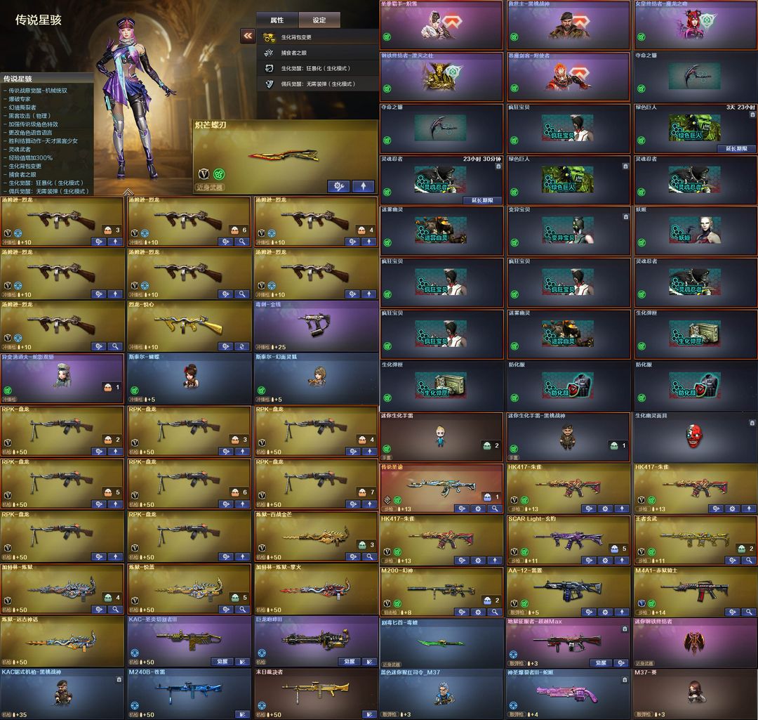 【装备道具】:汪汪小队幻神❤金色蔷薇-喵喵❤超新星兔兔战士❤星神巅峰❤宠儿幻神❤YZK幻神皮肤❤星神音效卡❤幻影音效卡❤宠儿幻神皮肤❤白虎常旭皮肤❤柯尔特无冕之王❤国王狮子❤神威天绫❤神威莲华❤炽芒蝶刃❤王者森力❤幻神音效卡❤加利尔ACE-天袭❤G36C-幻影❤王者森决❤KZ幻神皮肤❤qbz巅峰荣耀❤QBZ03-天罚❤传说圣谕★传说星骇★幻神❤玄豹全套❤凤灵裁决皮肤★裁决音效卡❤USP雷暴套❤王者玄武★王者冰锋❤6黑骑士生化6盘6烈龙蝴蝶枪★异变清道夫-蛇影双骄★SCAR Light-玄豹玄豹❤Anaconda-玄豹❤丛林匕首-玄豹❤毁灭冠军之怒❤雷神宠儿mvp❤雷神N9皮肤❤M200-幻神★qbz-金色蔷薇★USP春雷暴套★AK47-雷暴★USP雷暴★雷暴斩神刀★炫雷霆周年套★M4雷霆★大炮雷霆★Cop雷霆★王者之心★王者之魄★王者之武★王者之翼★王者之戮★炫★春★王者瞳闭月羞花★毁灭星空★耀金无影★雷神精英刀锋★火麒麟灵狐★水晶宝珠★炼狱悦蓝★6黑骑士7烈龙7盘龙斯泰尔蝴蝶★变异宝贝死亡对讲机不退包★佣兵觉醒无需换弹手斧镜减速雷★捕食者之眼查看血量★王者玄武森决玄豹套❤