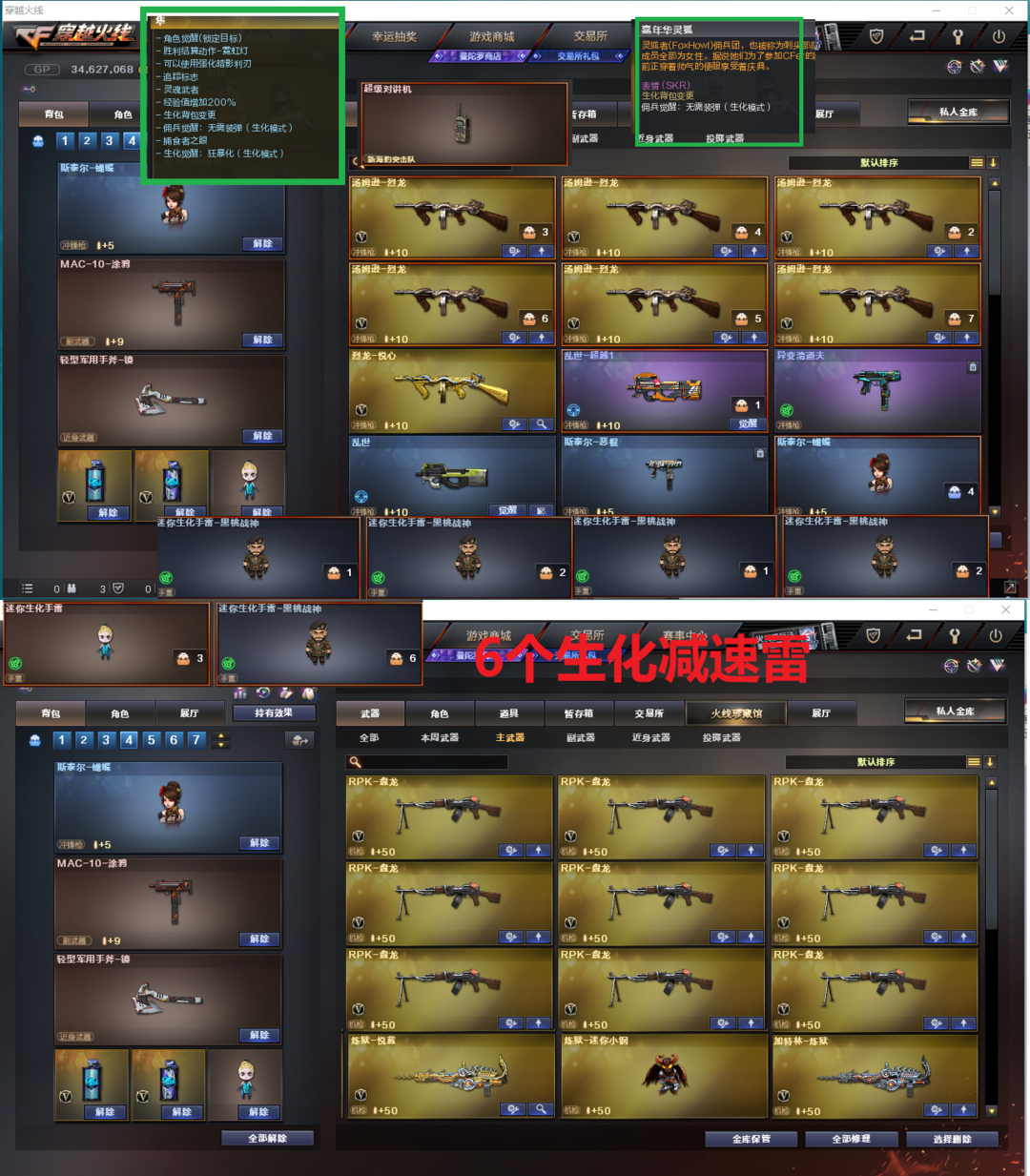 排位:可以------------------ 生化四防极品(变更背包、可以查看生化僵尸血量):无需换弹、6烈6盘、炼狱小钢、斯太尔蝴蝶、死亡之眼、 MAC-涂鸦、手斧镜、生化减速雷、超级对讲机、全部弹匣、、、、、爆破全装:幻神3皮+音效(电流骇客、巅峰荣耀、CFS2022)、王者幻神、M200-竞技荣光、98K星神、、、、COP堕天神、COP雷霆王者、柯尔特竞技荣光、ok确认夜魔、、、G36幻影、QBZ金色蔷薇音效、白虎、王者白虎、、、、1套多天、5套夜魔、、、、爆破四防(云悠悠、关小羽、王者貂蝉、雨棠)、生化四防(隼、嘉年华灵狐)