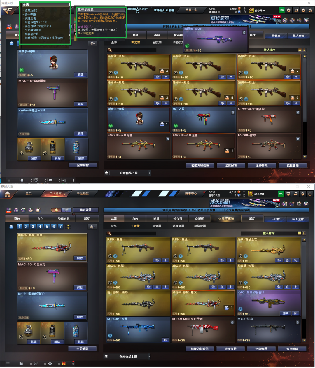 排位:可以、、、、、、、、、、生化全装(可以变更背包、查看生化僵尸血量):无需换弹、6烈龙、2盘龙、4炼狱、斯太尔蝴蝶、双面神、死亡之眼、MAC-涂鸦、手斧镜、生化手雷、超级对讲机、全部弹匣、、、、、、、、、、爆破四防:4皮幻神+音效(EP荣耀、电竞之星、周瑜、黄忠皮肤)王者幻神、98K星神、、、、USP雷暴、柯尔特EP荣耀、COP堕天神、传说光耀、传说暗裔、QBZ03-独角-VI、QBZ金色蔷薇、、、幻神音效、毁灭音效、雷神音效、巾帼英雄、火麒麟音效、黑骑士音效、、、4套雷暴、6套夜魔、3套电竞装甲、1套幻灵、、、生化人物(凌霄、嘉年华灵狐)、爆破四防(妮妮、王者春、职业经理)