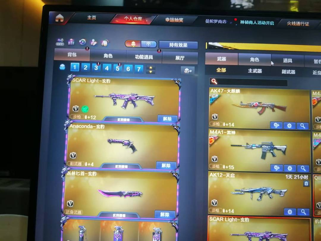 英雄武器:AK12-天启;Kar98K-星神;Barrett-毁灭;M4A1-雷神;加特林-炼狱;擎天;沙鹰-修罗;9A91-烈火;AK47-黑武士;闪光弹-玄豹;高爆手雷-玄豹;烟雾弹-玄豹;丛林匕首-玄豹;Anaconda-玄豹;SCAR Light-玄豹;沙鹰-天神;M4A1-猎神;QBZ03-天罚;机械迷城-穹宇;AA-12-雷霆;G36C-幻影;M200-幻神;Barrett-暗月传说;闪光弹-竞技荣光;高爆手雷-竞技荣光;烟雾弹-竞技荣光;M4A1-黑龙;麒麟刺;M4A1-黑骑士;AK47-火麒麟;AWM-裁决;屠龙;汤姆逊-烈龙