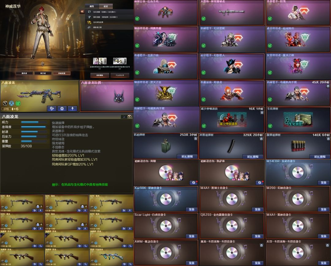 【北部】传说莲华+幽瞳⭐幻神星火4皮+音⭐裁决星神套⭐八面金翼禅狮+龙宝棘鲨⭐蝴蝶刀*4⭐生化满配
