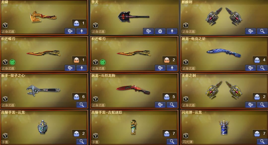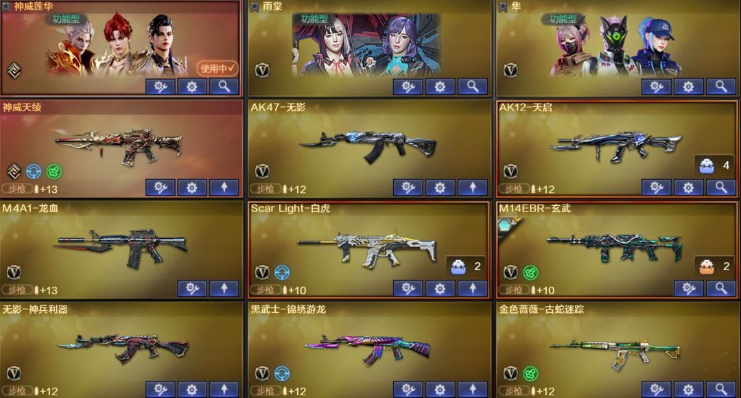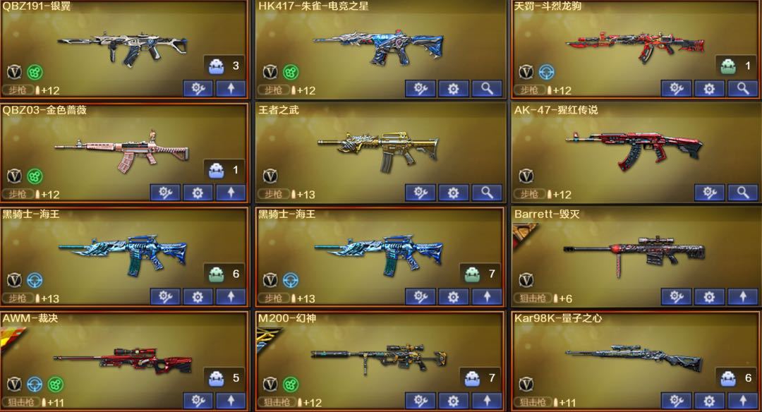 神威莲华/神威天凌/隼/六烈龙/斯太尔蝴蝶/炽芒蝶刃*2/玄武/白虎/QBZ金色蔷薇/幻神/98量子