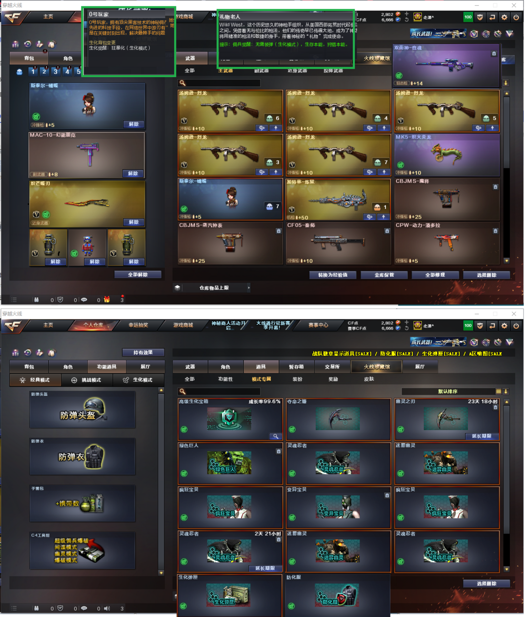 排位:可以、、、、、、生化四防(查看生化僵尸血量):无需换弹、6烈龙、炼狱、MK5-炽火炎龙、斯泰尔蝴蝶、死亡之眼、炽芒蝶刃、生化雷、超级对讲机、全部弹匣、、、、、、、、、爆破四防:幻神3皮+音效(曹操、电流骇客、黄忠皮肤)、王者星霆、USP雷暴、无冕之王、2个COP云龙、G36幻影、白虎、、、幻神音效、白虎音效、、5套雷暴、2套雷霆王者、、生化人物(0号玩家、礼物老人)爆破四防(王者空、王者魅影)