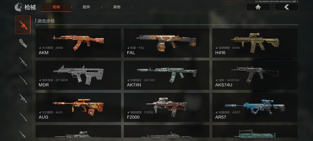 30级,历史最高段位:暗区传说【近战武器】:寒牙手刺,工兵铲,来战开山刀;【角色皮肤】:都市夜影套装,黑金指挥官作战服,苏梅克制式服,黑金作战服,九号特遣;【突击步枪】:火力倾泻AKM,来战AKM,秋宴FAL,自喷网格H416,深水浴池DTMDR,来战AK74N,白狼连队AK74N,龙影AKS74U,火力倾泻AUG,钢铁真理F2000,炎夏浪花AR57,涂绘猎人AR57,骑士之剑ACE31,旗帜AEK,绿松石数码Groza,绿松石数码T951,彻甲铜斑T03,北国内卫AK12,07式林地迷彩QBZ191,绿松石数码9A91;【冲锋枪】:火力倾泻MP5,玄戈梨花MPX,雪山之王MPX,滑雪季UMP45,自喷网格UMP45,荒漠涂绘T79,神锋Vector45,绿松石数码T85,竞技Vector9,滑雪季Suomi;【射手步枪】:旗帜SVDS,玄戈梨花VSS,骑士之剑MK14,焰色反应M110,绿松石数码DBR,绿松石数码QBU191;【栓动步枪】骑士之剑码SJ16,绿松石数码SJ16,滑雪季M24,数码猎人M24,莫克斯M24;【轻机枪】:旗帜RPK16O;【霰弹枪】:无畏USAS12,
