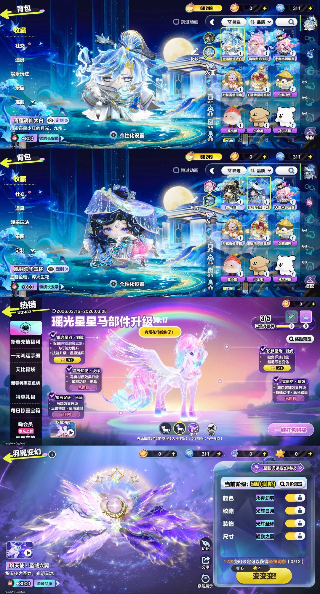 满级天官☀锦绣长安录☀满级百变羽翼☀线条小狗☀魔术师梨嘉☀月白之隐☀星星马车☀王冠精灵