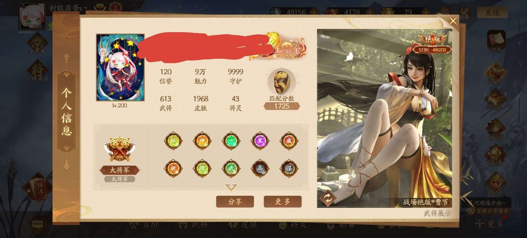 ⭐新将威公孙瓒、侯昭宁、谋庞统,威孙策,威香,满信誉,613将除王朗刘徽,基本只缺一些天牢,盒子阴间齐全,全宝玉将,200灯、300灯全,全扩只缺图3几个天牢;四武庙全国士皮,臻玉鎏金册子全动皮,双形态动皮谋司马懿、谋周瑜、谋鲁肃、刘烨、和尚等,多锦绣多动皮,《上 号 看 信 件 有优 惠》。