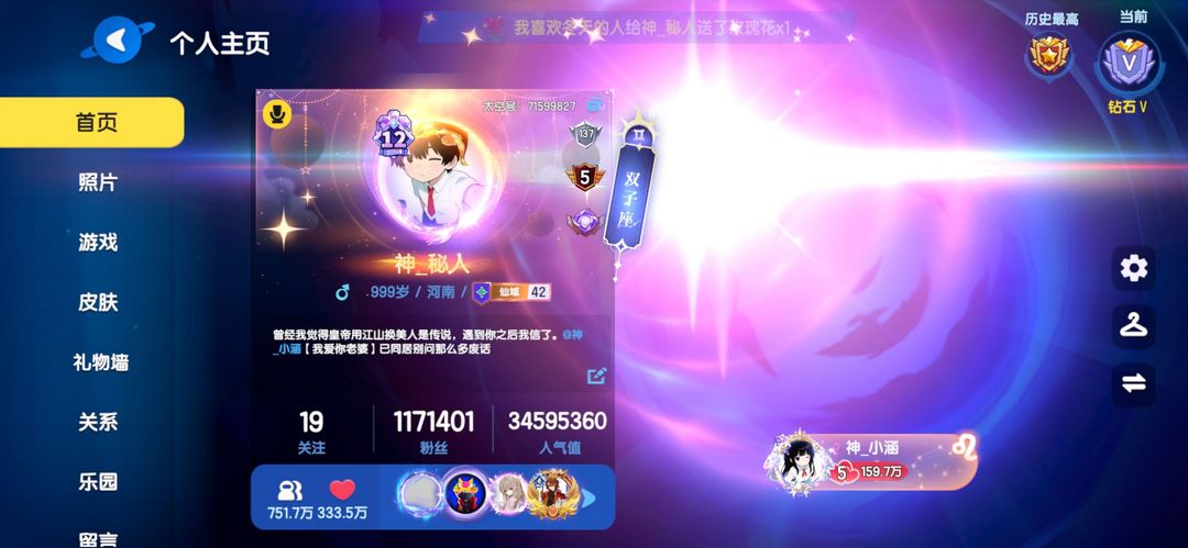 太空杀第一氪号氪条150万有全服唯一金翅膀(40万得到的)全服第一个占星阁座椅定制光环叶罗丽已入