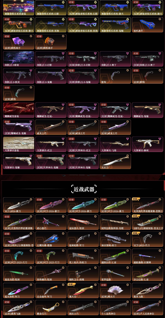 2026VCT刀悲悯之刃千灵狂徒颗秒狂徒2025全球冠军掠影2.0套装22冠军苍龙之刃光荣异象狂徒离子狂徒VCT2025爪双城之战狂徒拳套掠影戍卫狂徒奇点2.0黯夜怪谈2024全球冠军混沌序曲狂徒全息波普2.0特效全开*满限定!源能者*光明哨兵*全息波普*全息波普2.0*塑水宗*机动狂飙*天界神兵*耀鳞威龙套装*剥皮小刀*2021全球冠军套装*2023全球冠军套装*离火刃*双城之战正义*堕天遗武狂徒堕天遗武冥驹*威龙之刃*盖亚狂徒