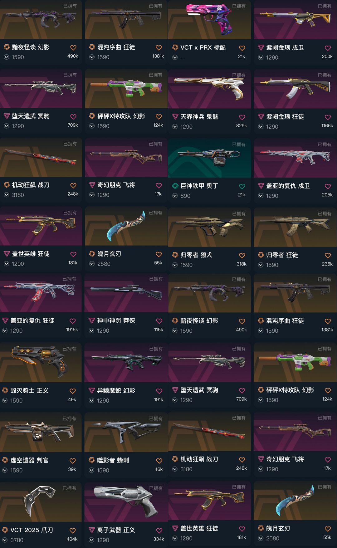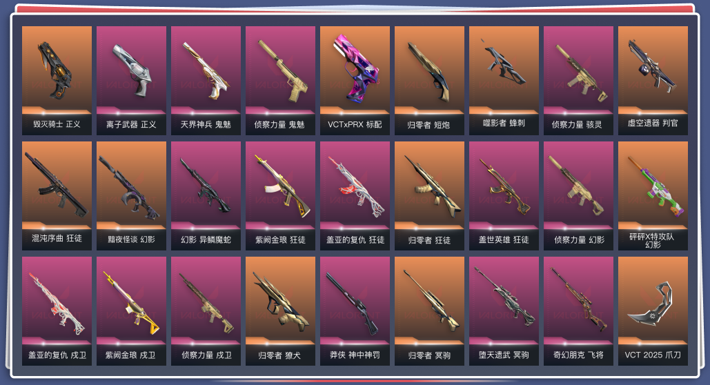 可排丨精品vct爪刀丨兔刀战刀丨混沌紫金猴子归零者盖亚丨异灵魔蛇丨黯夜怪谈丨天界鬼魅丨离子正义丨砰砰