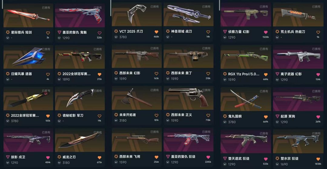 可排✨22冠军套✨西部未来套✨VCT爪刀✨威龙之刃✨塑水宗狂徒✨鬼丸国纲✨离子幻影