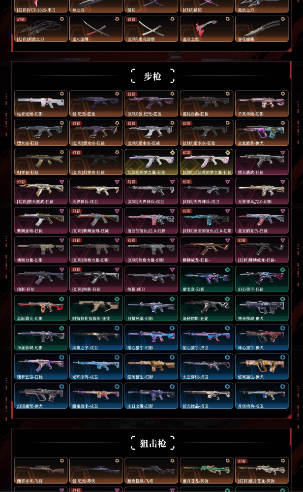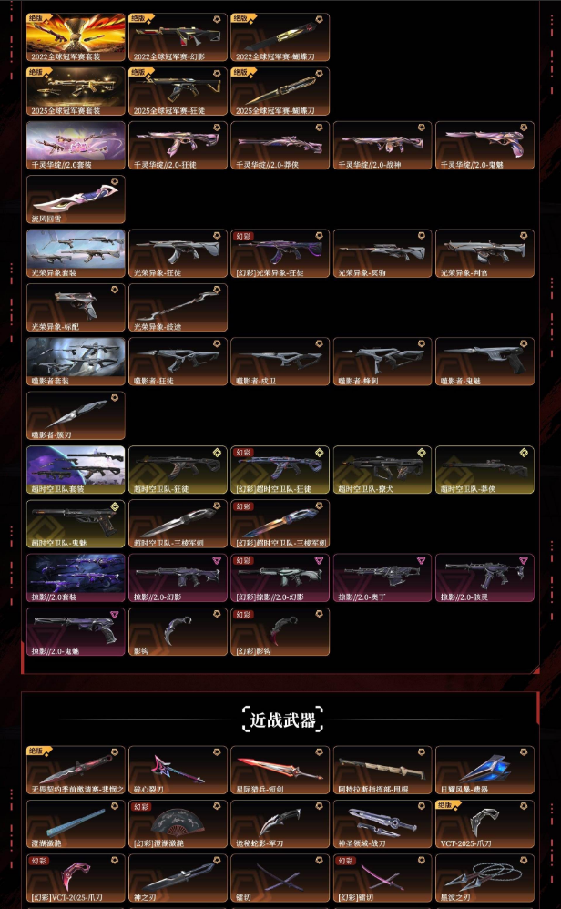 悲悯之刃千灵华绽2.0超时空卫队2022冠军2025冠军光荣异象掠影2.0澄湖澈艳vct爪刀黑波之刃盖亚之怒穿花蝴蝶电音光谱幻影创纪元狂徒混沌序曲狂徒千灵华绽幻影塑水宗狂徒全息波普撩犬归零者狂徒艾莉沃的梦之翼狂徒堕天遗武狂徒天界神兵2.0幻影紫阙金琅狂徒盖亚的复仇2.0幻影侦察力量幻影耀鳞威龙狂徒掠影狂徒西部未来飞将创纪元莽侠黯夜怪谈飞将偃月苍龙冥驹堕天遗武冥驹掠影冥驹艾莉沃的梦之翼奥丁艾莉沃的梦之翼骇灵blg标配末日泡泡正义虚空遗器正义西部未来正义破败军械鬼魅塑水宗正义艾莉沃的梦之翼鬼魅掠影3.0追猎掠影正义