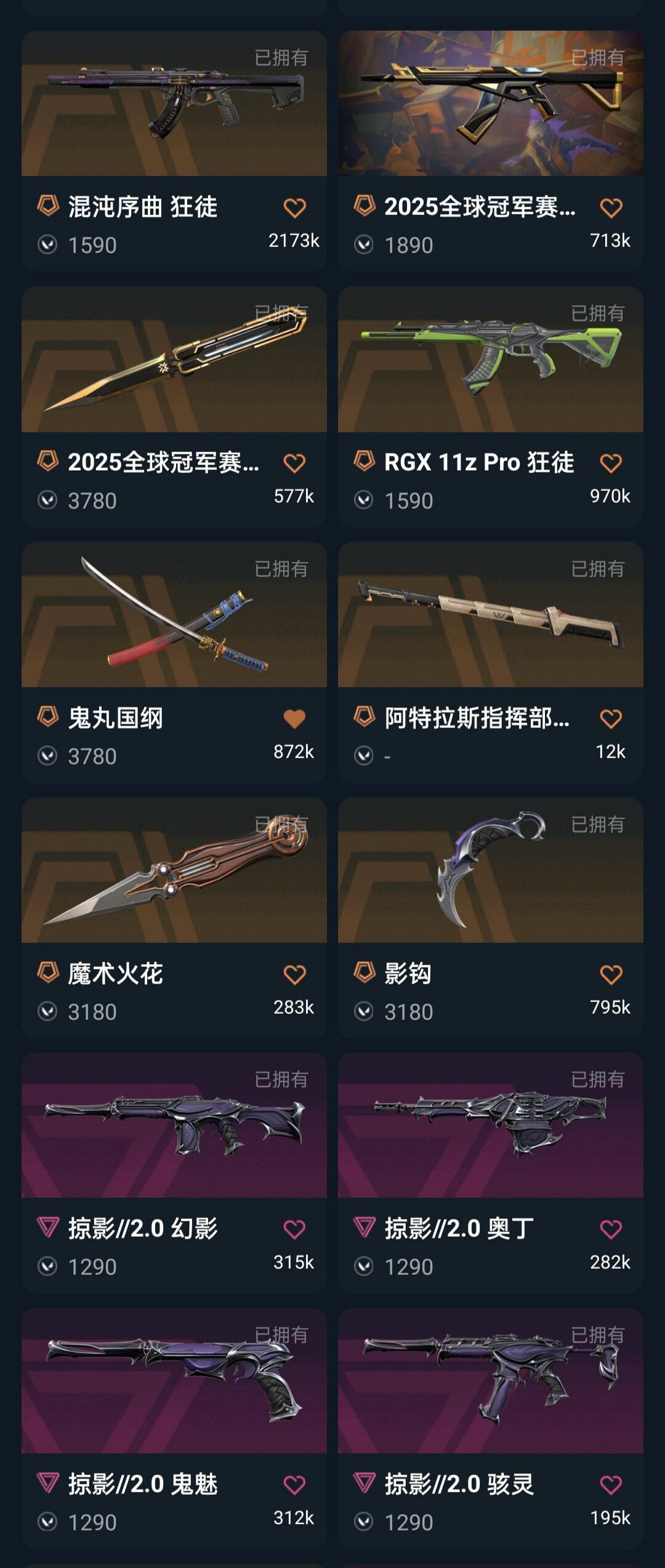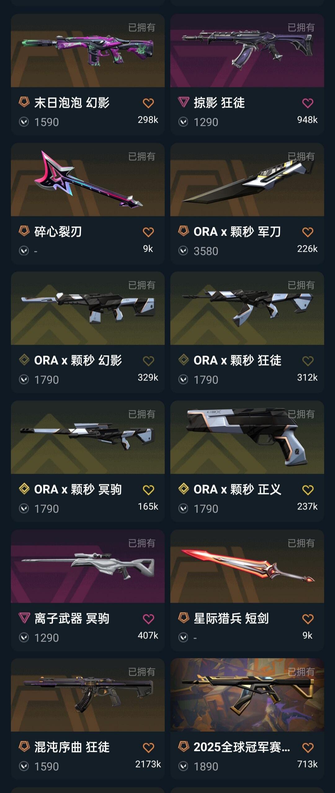 禁排 VCT26篆刀ORA颗秒套2025冠军套掠影2.0套影钩堕天盖亚掠影日冕耀鳞显卡狂徒莲花幻影魔