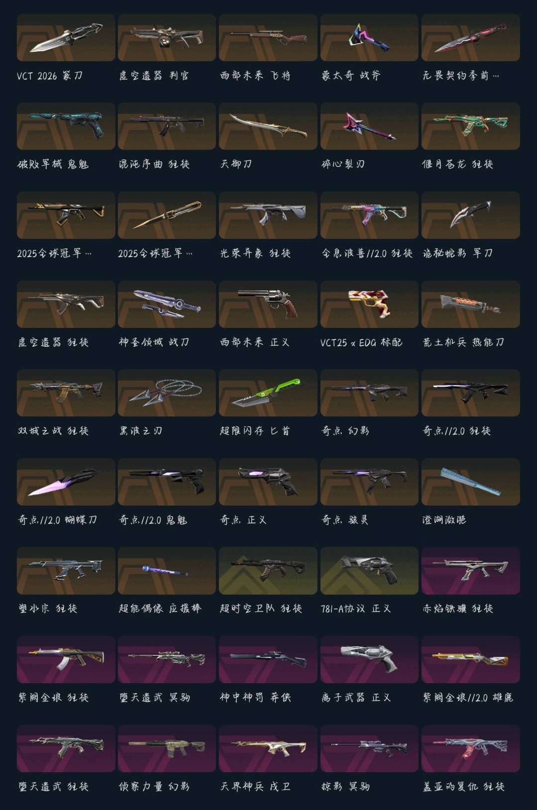 26vct套装 25冠军套 怜悯之刃套装 奇点2.0套装,马年/盖亚/虚无/混沌/紫金/天界/塑水宗/波普/光荣/苍龙/超时空/25冠军ak,侦查幻影,天界戍卫,25EDG标配,破败奇点鬼魅,奇点/离子/西部/781-A正义,奇点骇灵,紫金雄鹿,虚无判官,西部飞将,神中神罚莽侠,掠影/堕天大狙,26vct篆刀,澄湖潋滟,黑波之刃,奇点蝴蝶刀,25冠军蝴蝶刀,怜悯之刃,天御刀 。请游戏局内保持文明,防止禁言影响他人游戏,祝您玩得愉快!禁止利用账号进行开挂、使用辅助违规软件诈骗等违规操作。