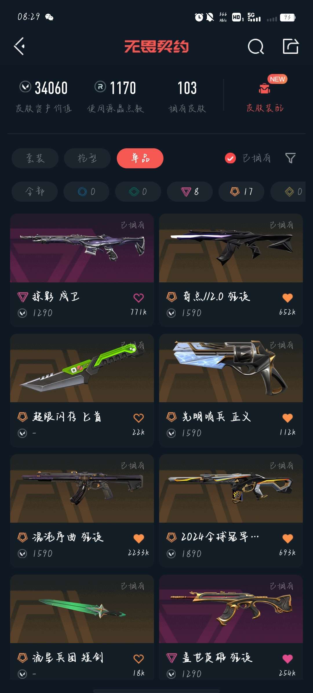 武器皮肤数量:103