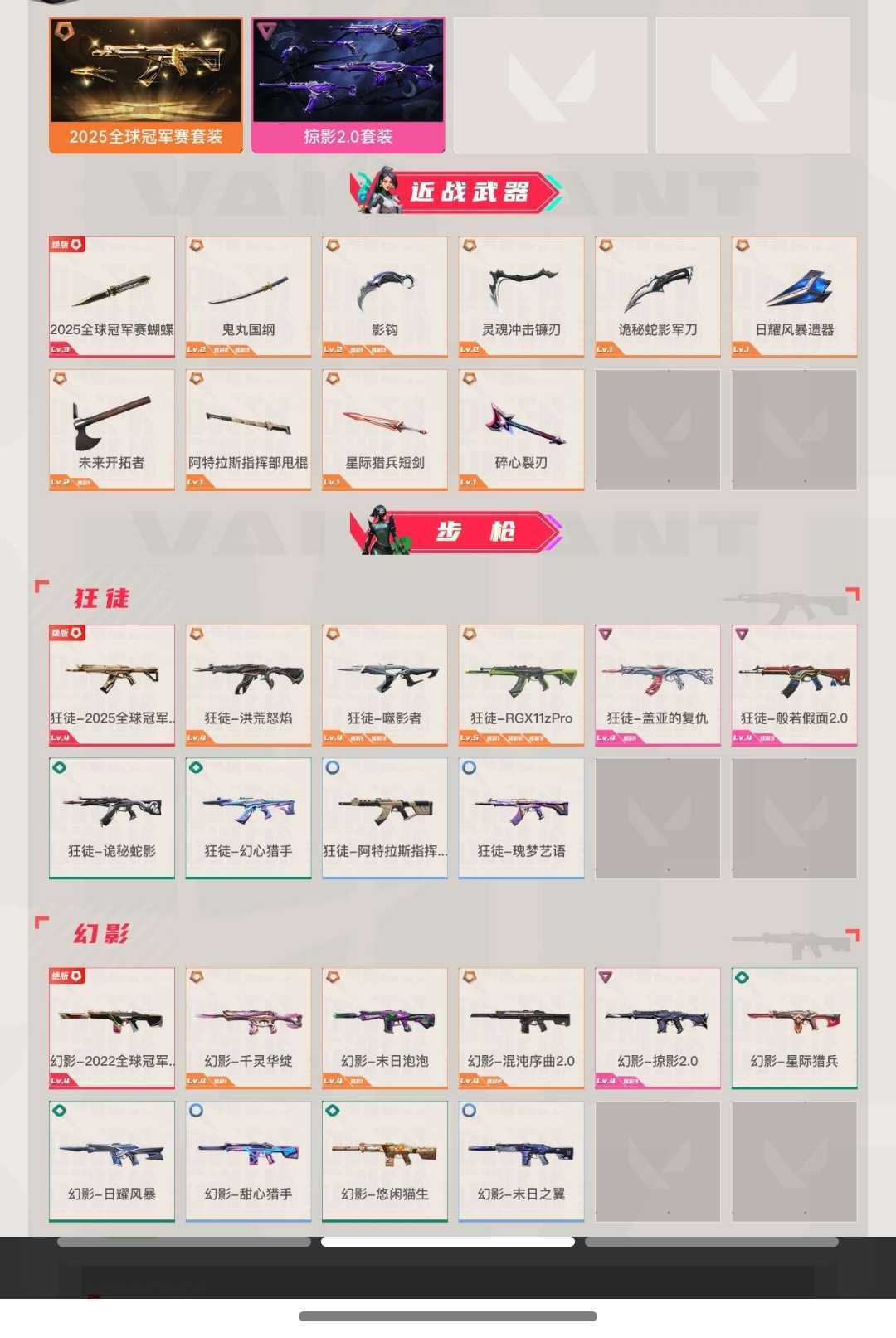 禁止炸鱼,挂机,开 g 23级 未定级; 49080皮肤总价值,10刀皮,80枪皮(热门枪皮6狂徒5幻影3正义2鬼魅2冥驹1骇灵1标配1戍卫1奥丁);【套装】: 2025全球冠军赛套装, 掠影2.0套装;【刀皮】:近战武器-2025全球冠军赛蝴蝶刀,近战武器-鬼丸国纲,近战武器-影钩,近战武器-灵魂冲击镰刃,近战武器-诡秘蛇影军刀,近战武器-日耀风暴遗器,近战武器-未来开拓者,近战武器-阿特拉斯指挥部甩棍,近战武器-星际猎兵短剑,近战武器-碎心裂刃;