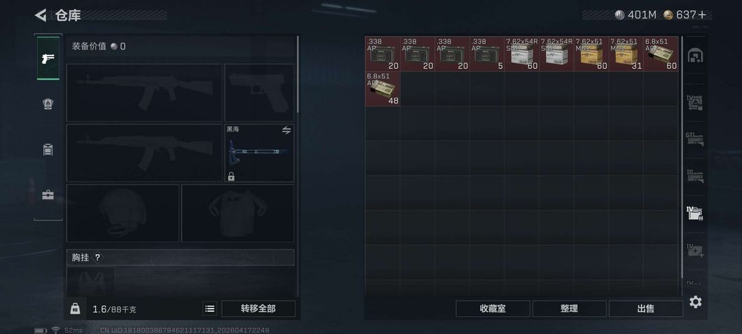 三角洲账号纯币出租,有六格,满体,有AW子弹