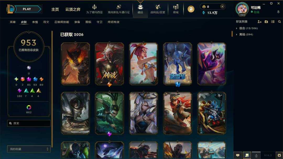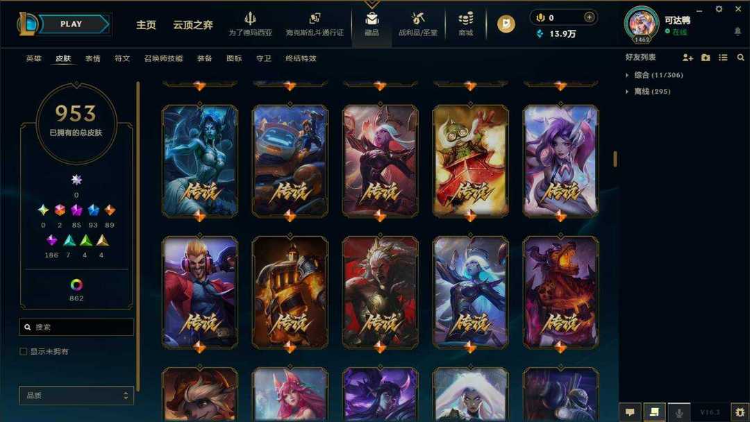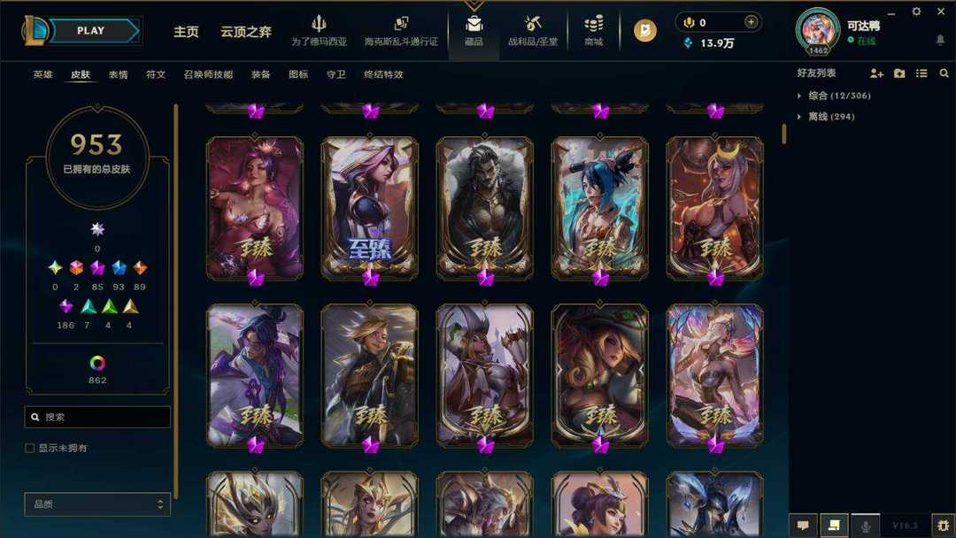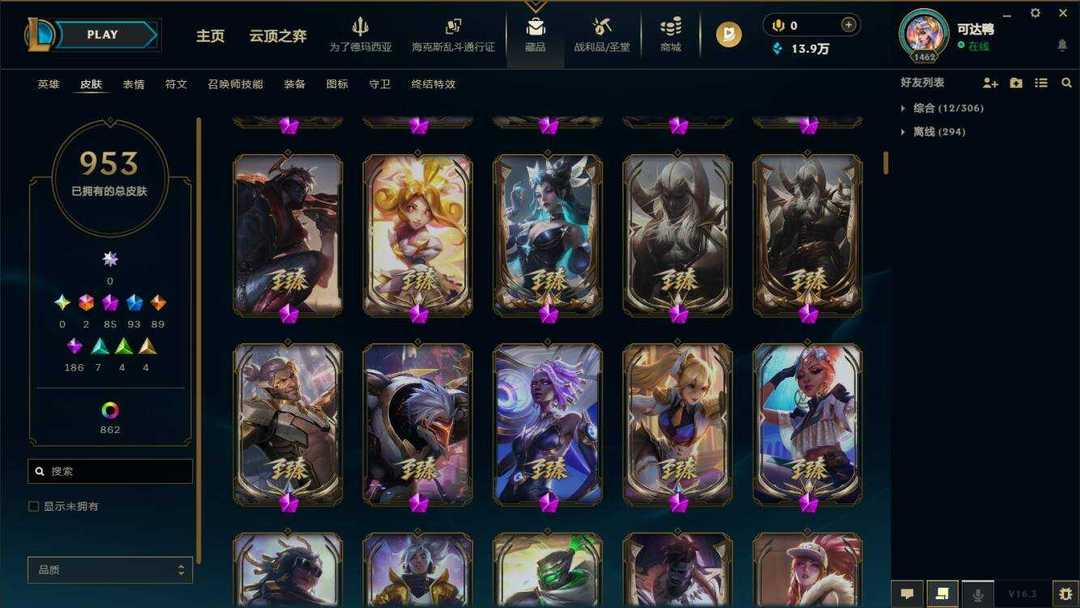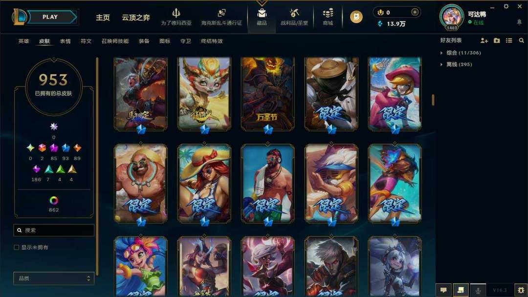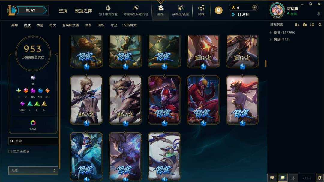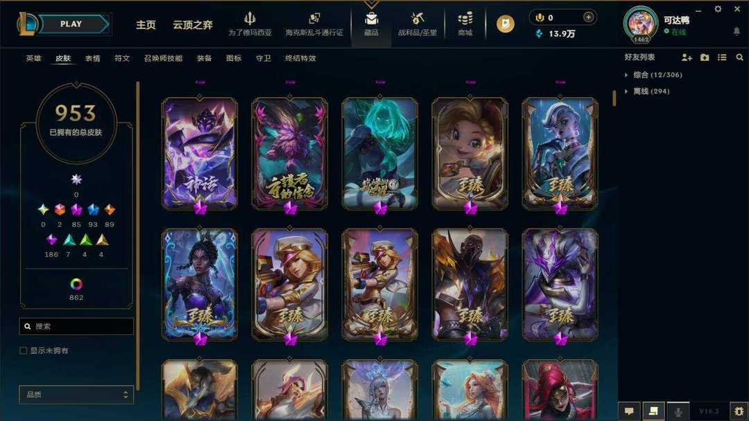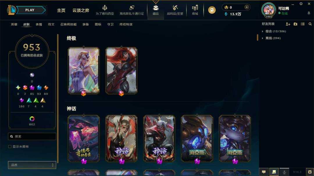 海斗满级【艾欧尼亚】950原皮+1015炫彩⚡88至臻神话⚡彩虹马⚡泳池佐伊⚡鸡里奥⚡永森奥恩