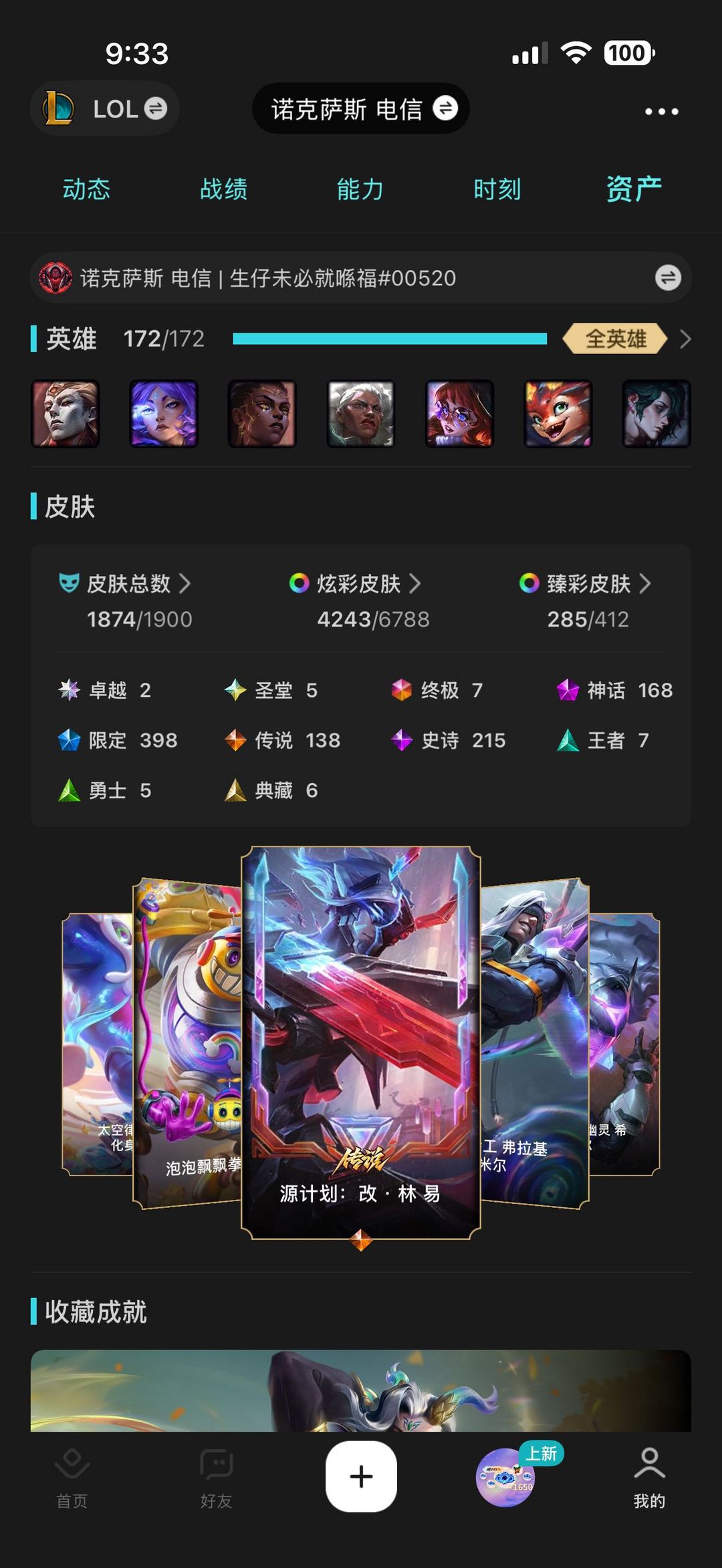 联盟二区II1860原皮4200炫彩可排♥全新改林剑圣♥全圣堂神话至臻年限♥联盟不朽阿狸卡莎