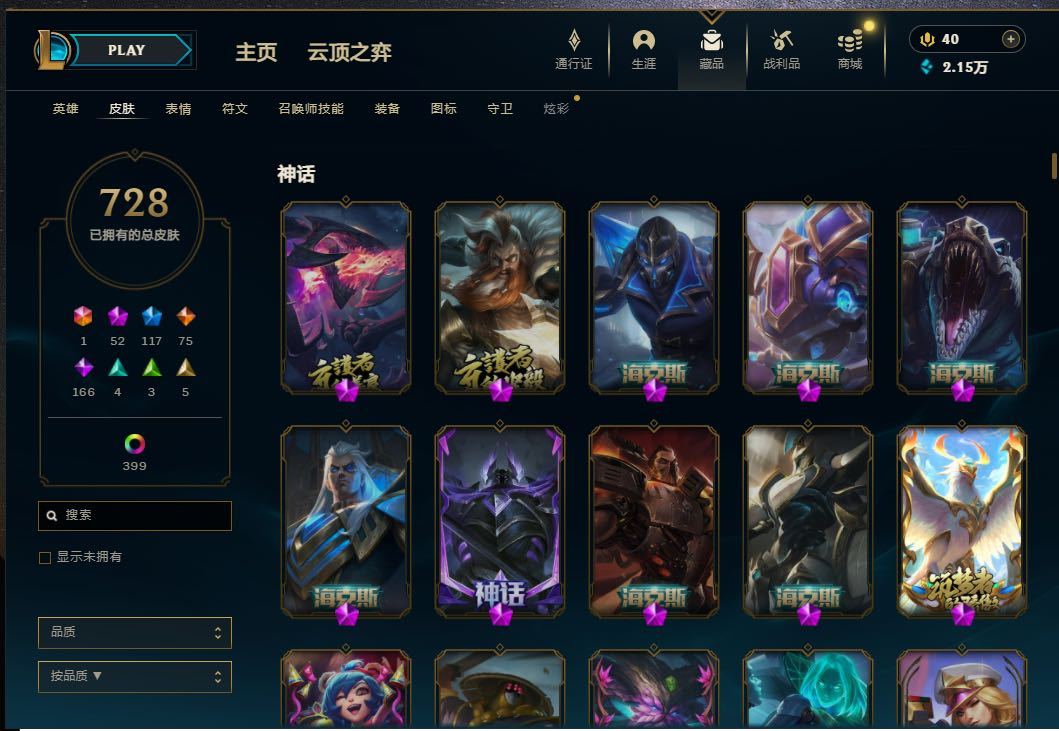 ██ 全英雄 1500皮丨60神话丨可排位丨龙瞎丨金卡莎丨神龙李青丨玉剑男女刀丨莲华永恩瑟提莉莉娅