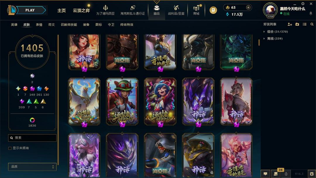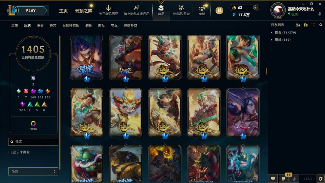 【LOL大王】3200P乄1405原皮乄1836炫彩乄签名卡莎乄签名阿狸乄圣堂金克丝乄神话幻想阿狸