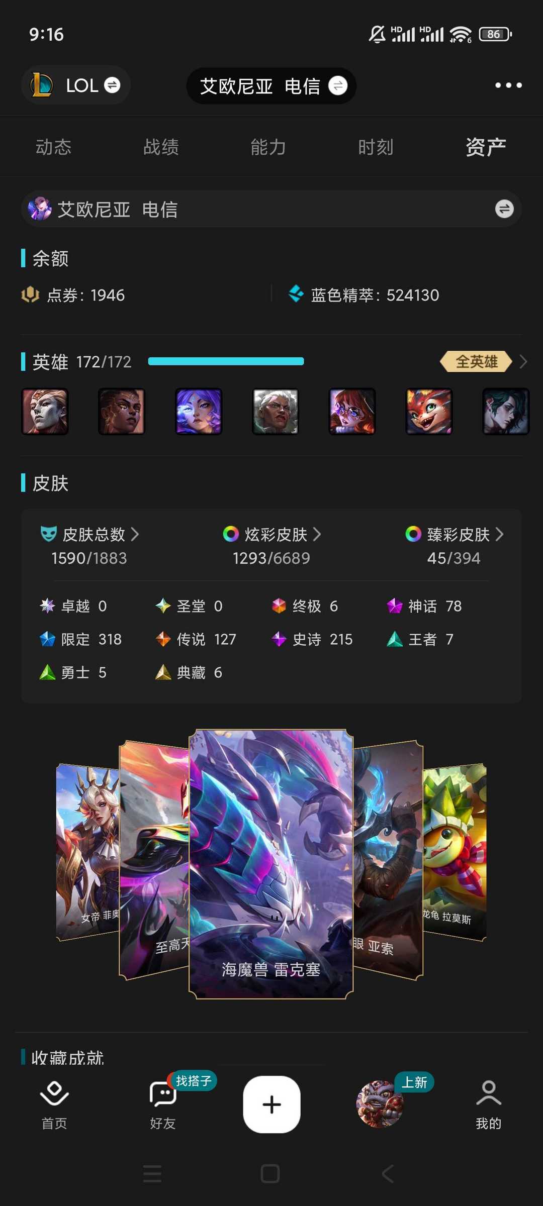 电一1590皮+1500炫⚡温泉皮⚡新西部魔影⚡云顶7神话⚡全至臻⚡年限全⚡妹子号请善待qwq