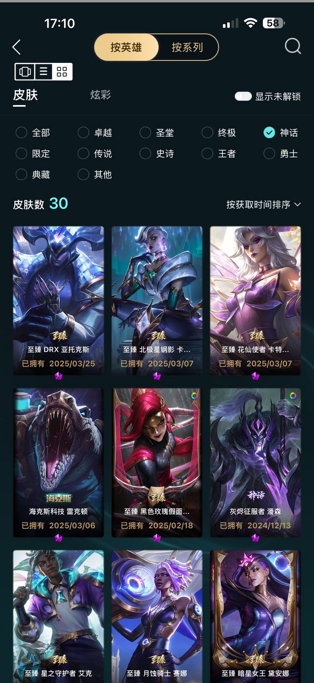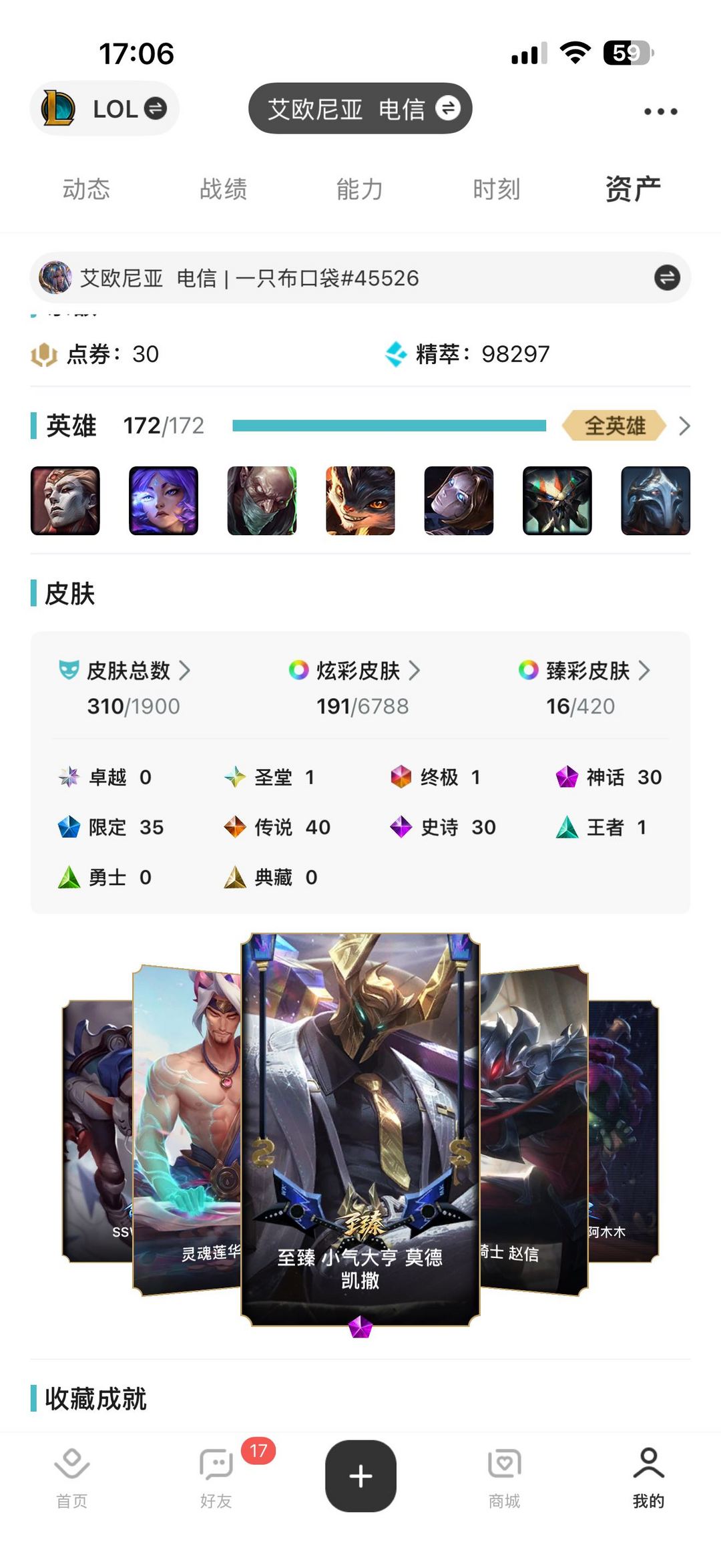 极品带人号真实皮311✨神话至臻30皮✨传说40✨限定36✨圣堂双城金克丝✨终极灵魂乌迪尔臻彩16✨