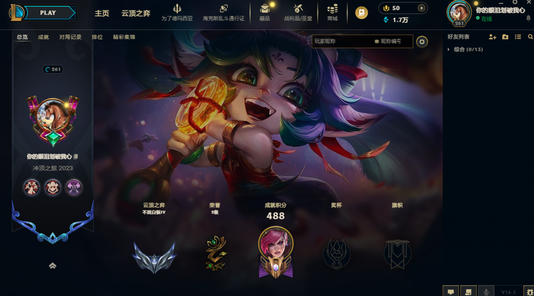 段位:264级 荣耀黄金I