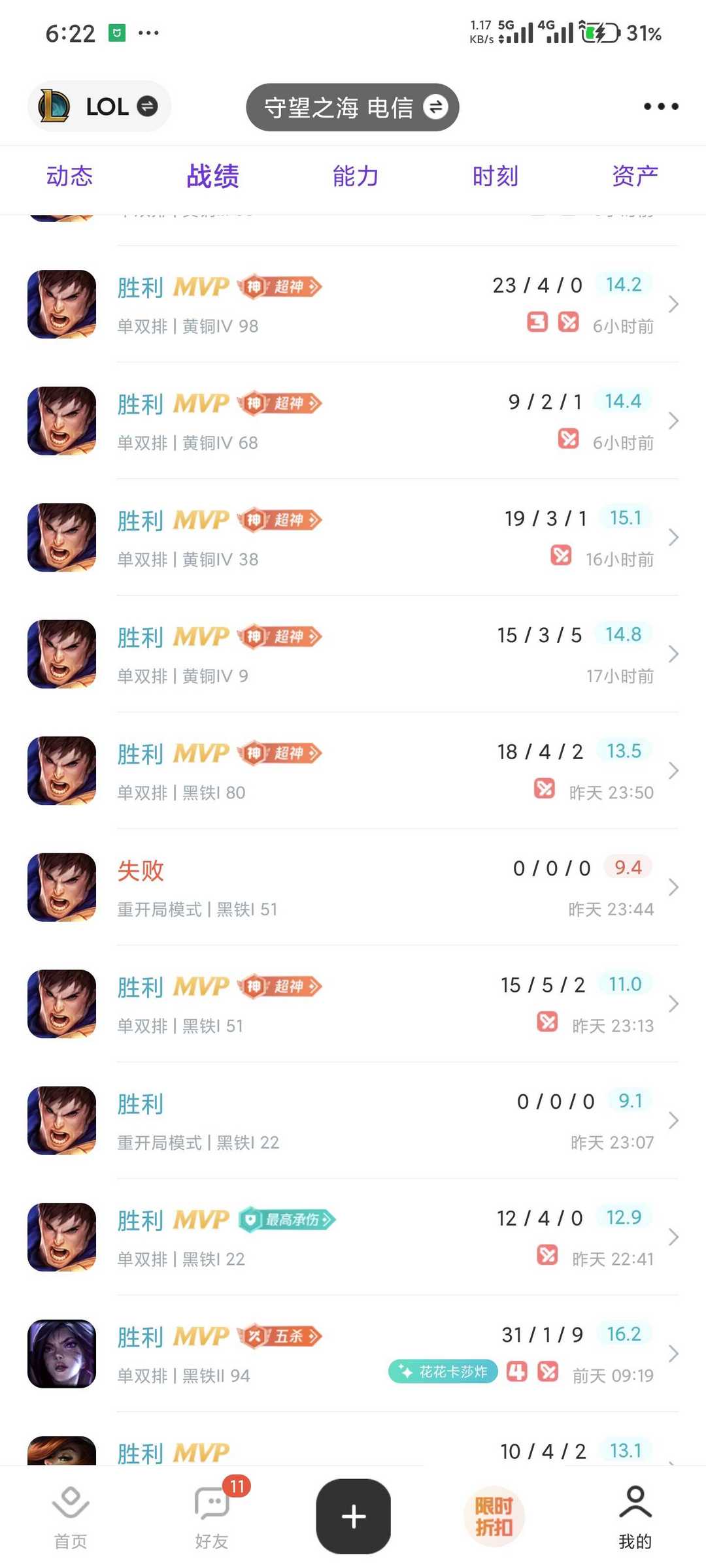 段位:1093级 英勇黄铜IV