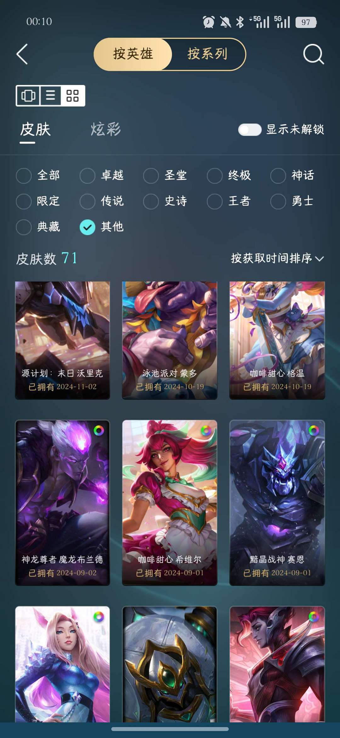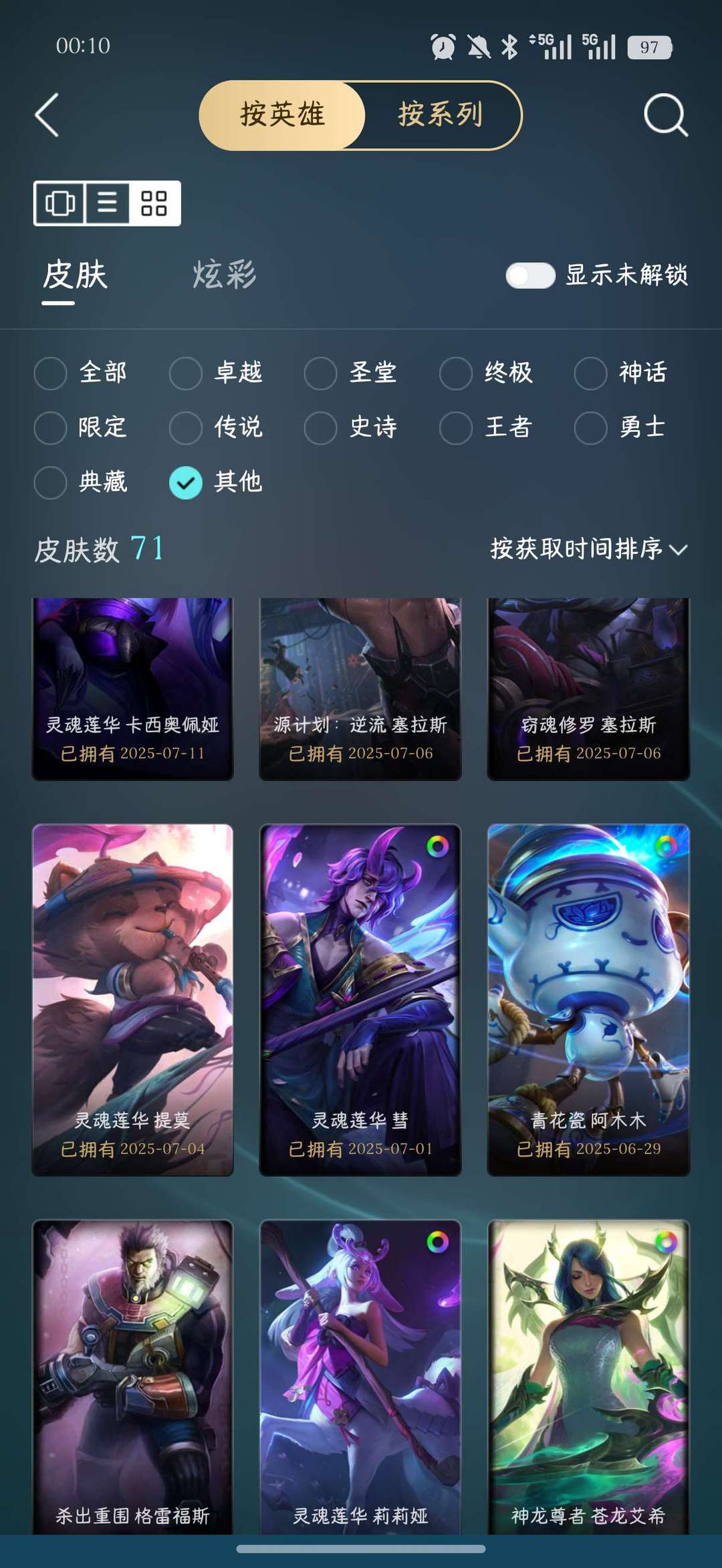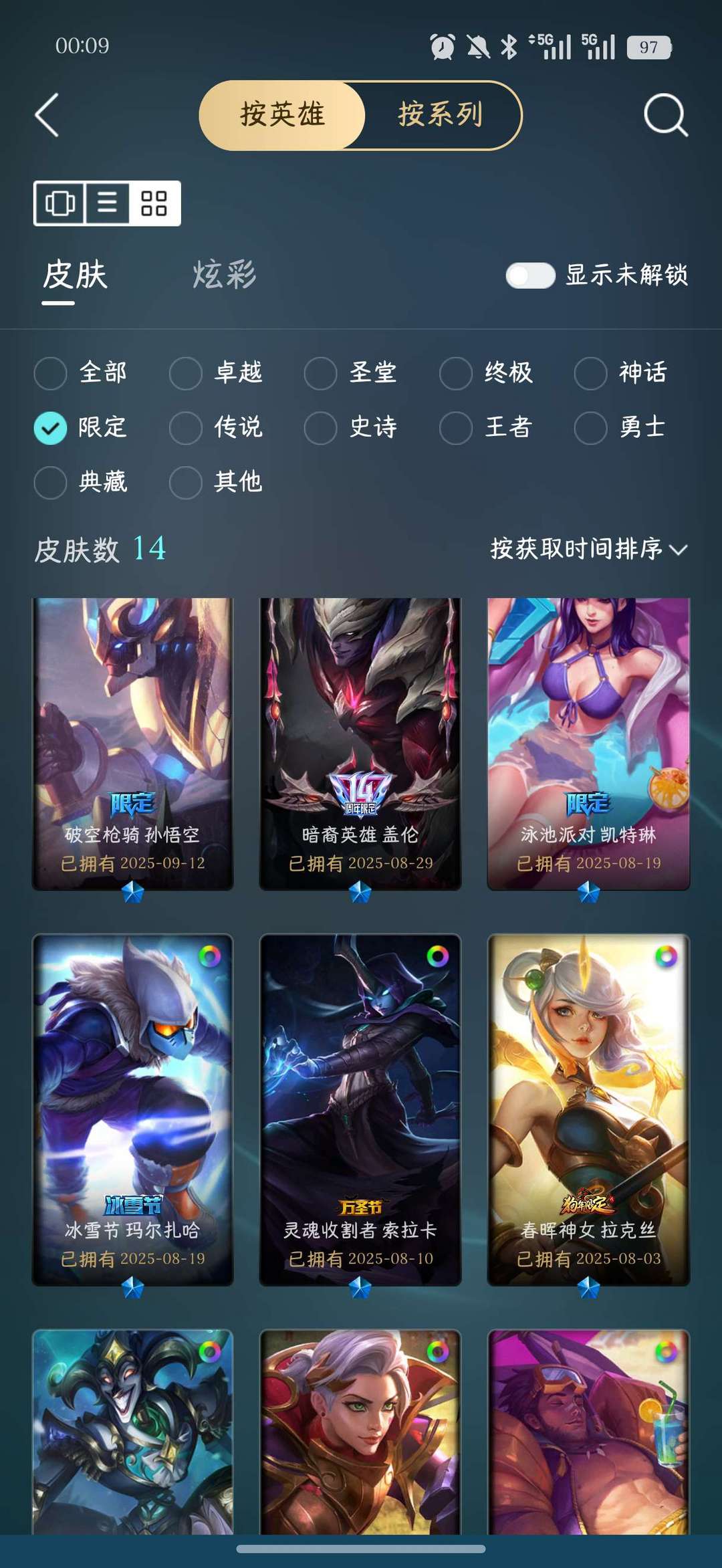 一共122皮肤,所有限定和传说神话都在图里,排位可打,蓝色精粹可以买英雄,