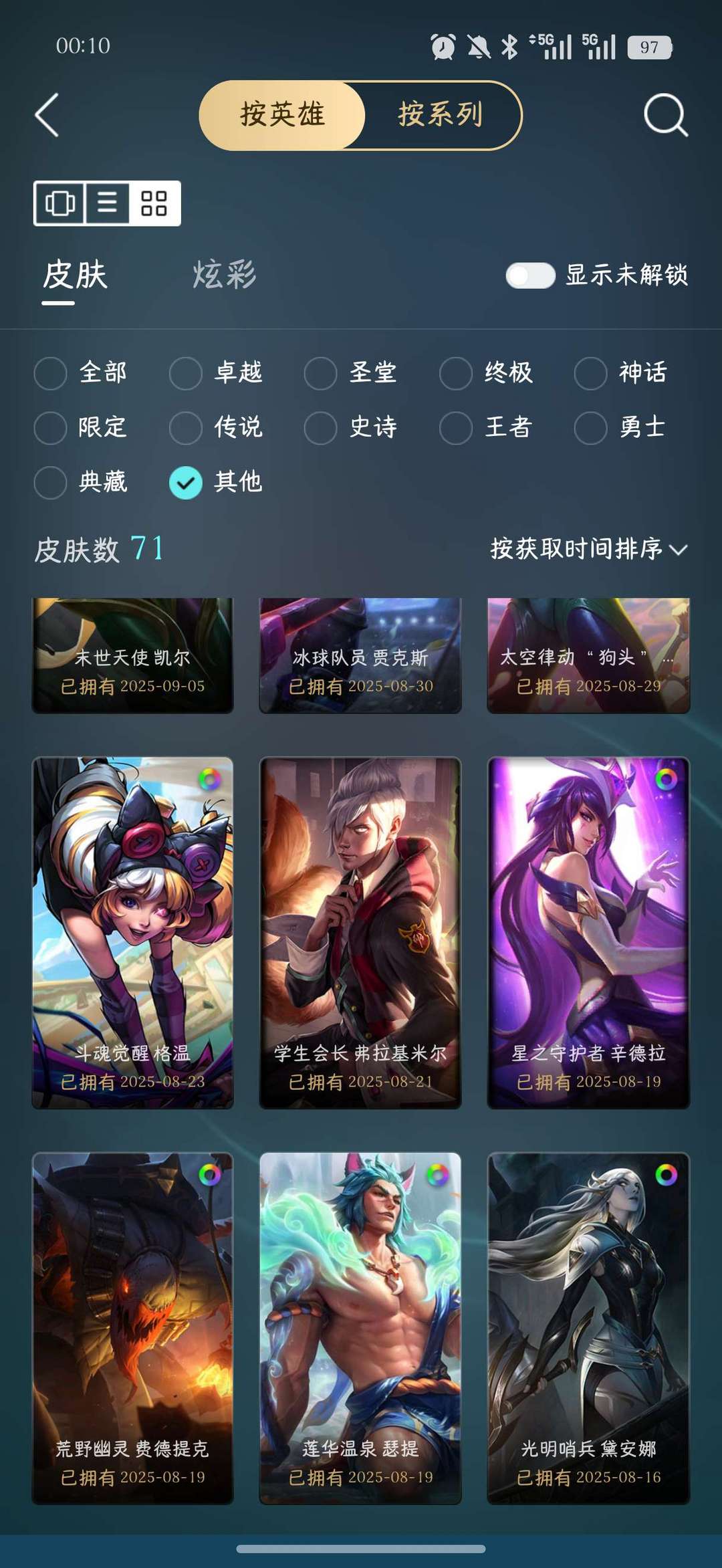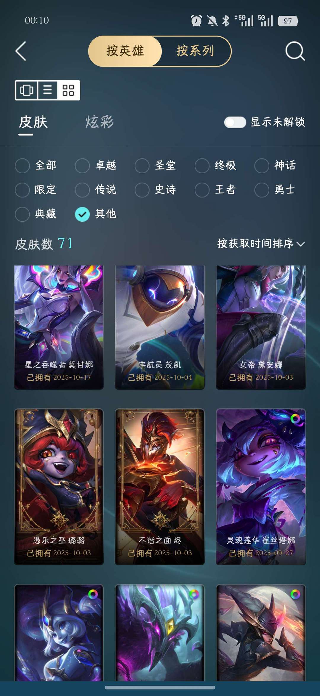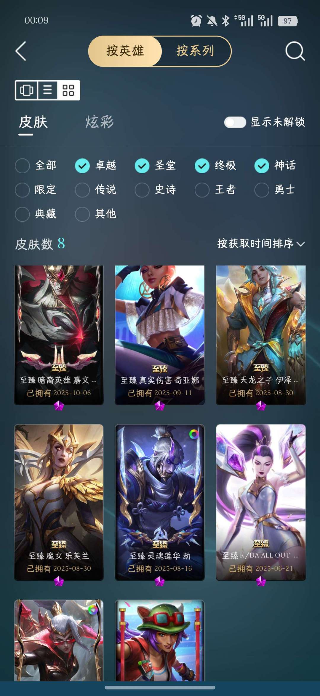 一共122皮肤,所有限定和传说神话都在图里,排位可打,蓝色精粹可以买英雄,