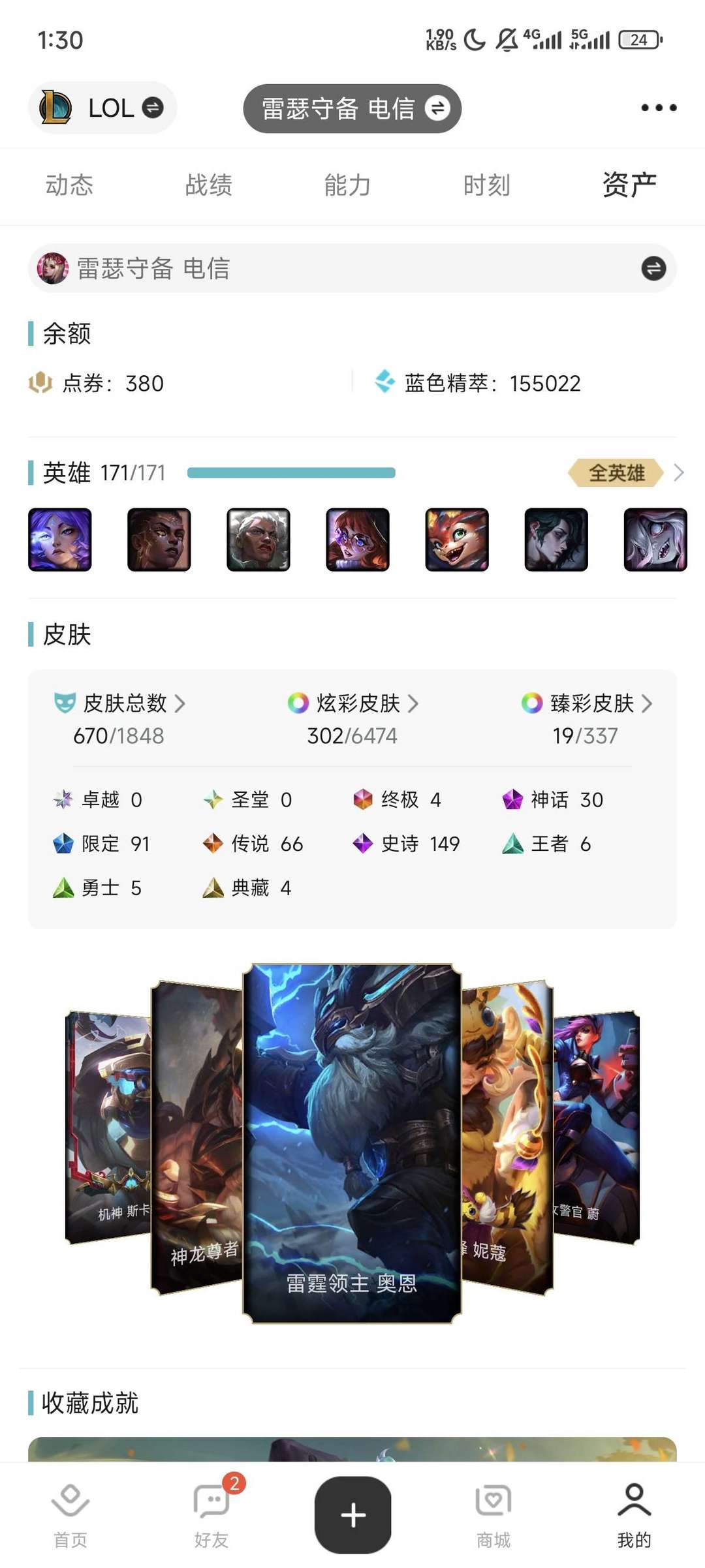 【雷瑟守备】全英雄+600+皮肤!开黑冲分首选!!!
