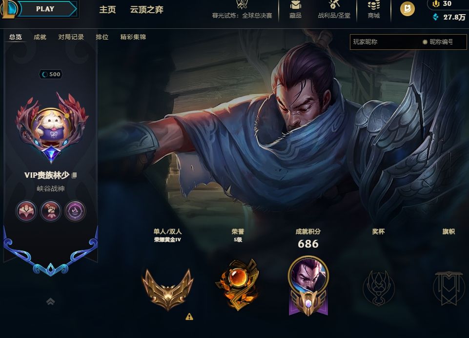 段位:500级 荣耀黄金IV级 荣耀黄金IV
