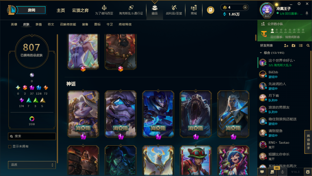 段位:865级 荣耀黄金IV