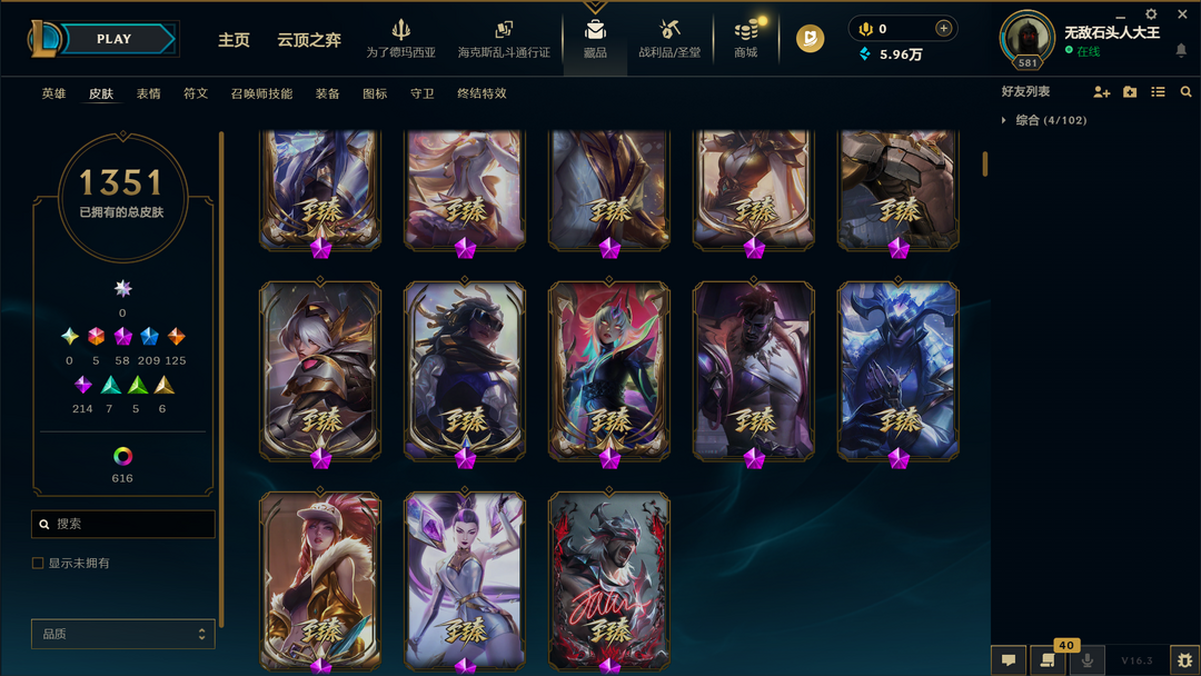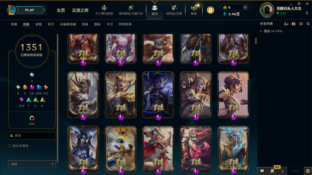 真实1350原皮❤️60神话❤️新皮超多❤️至臻T1签名塞拉斯❤️冰原酒桶❤️殿堂妖姬❤️至臻诺手