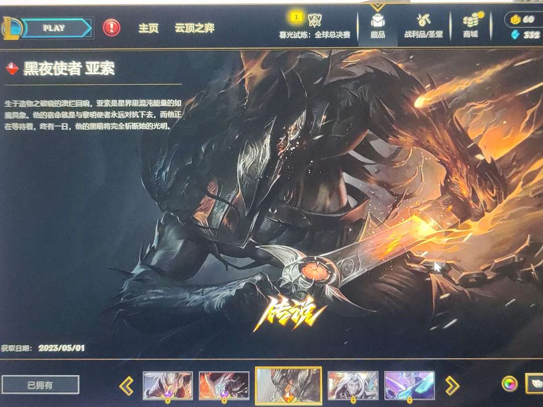 亚索有神龙,黑夜,真实伤害,剑圣有源计划,玉剑传说,武器有武神,还有霸天剑魔,冰霜之刃等等