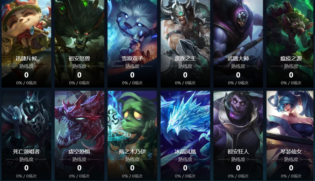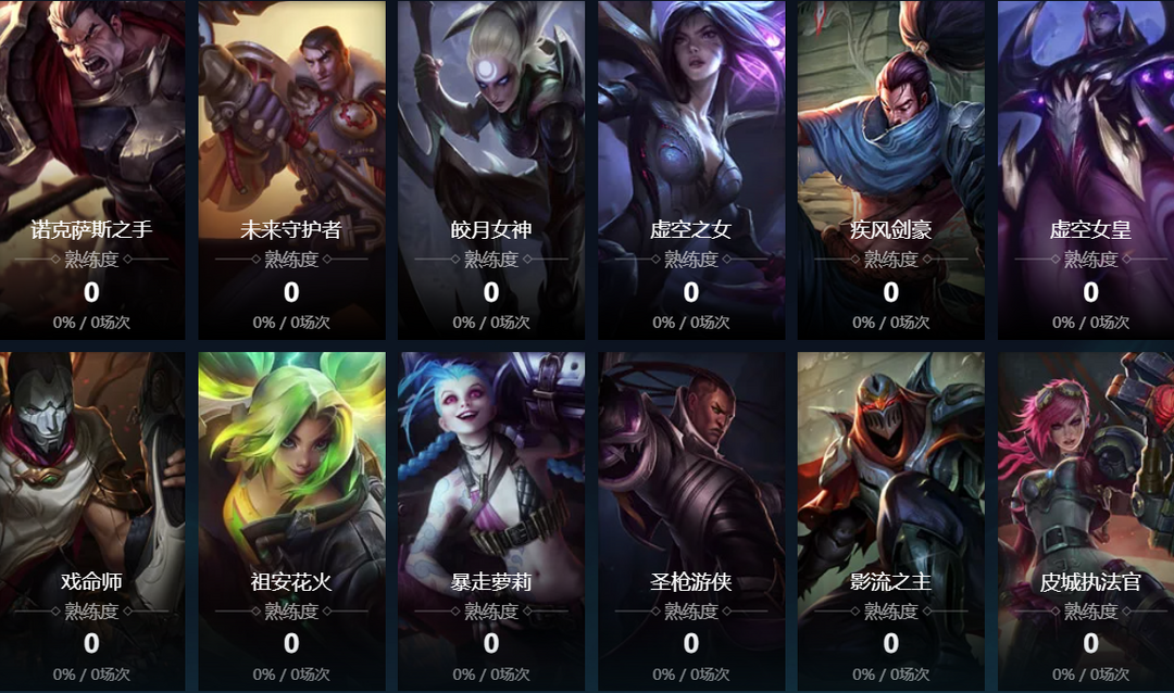迅捷斥候;寒冰射手;涤魂圣枪;皮城女警;黑暗之女;德邦总管;猩红收割者;远古恐惧;无极剑圣;牛头酋长;亡灵战神;战争女神;众星之子;麦林炮手;祖安怒兽;雪原双子;赏金猎人;蛮族之王;武器大师;堕落天使;时光守护者;痛苦之拥;虚空恐惧;殇之木乃伊;披甲龙龟;祖安狂人;琴瑟仙女;风暴之怒;瓦洛兰之盾;邪恶小法师;诺克萨斯统领;蒸汽机器人;熔岩巨兽;复仇焰魂;盲僧;暗夜猎手;沙漠死神;兽灵行者;圣锤之毅;不屈之枪;探险家;铁铠冥魂;德玛西亚之力;曙光女神;放逐之刃;光辉女郎;远古巫灵;潮汐海灵;不灭狂雷;北地之怒;爆破鬼才;诺克萨斯之手;皎月女神;虚空之女;疾风剑豪;虚空女皇;戏命师;暴走萝莉;圣枪游侠;影流之主;皮城执法官;魔法猫咪;魂锁典狱长;解脱者;封魔剑魂;腕豪