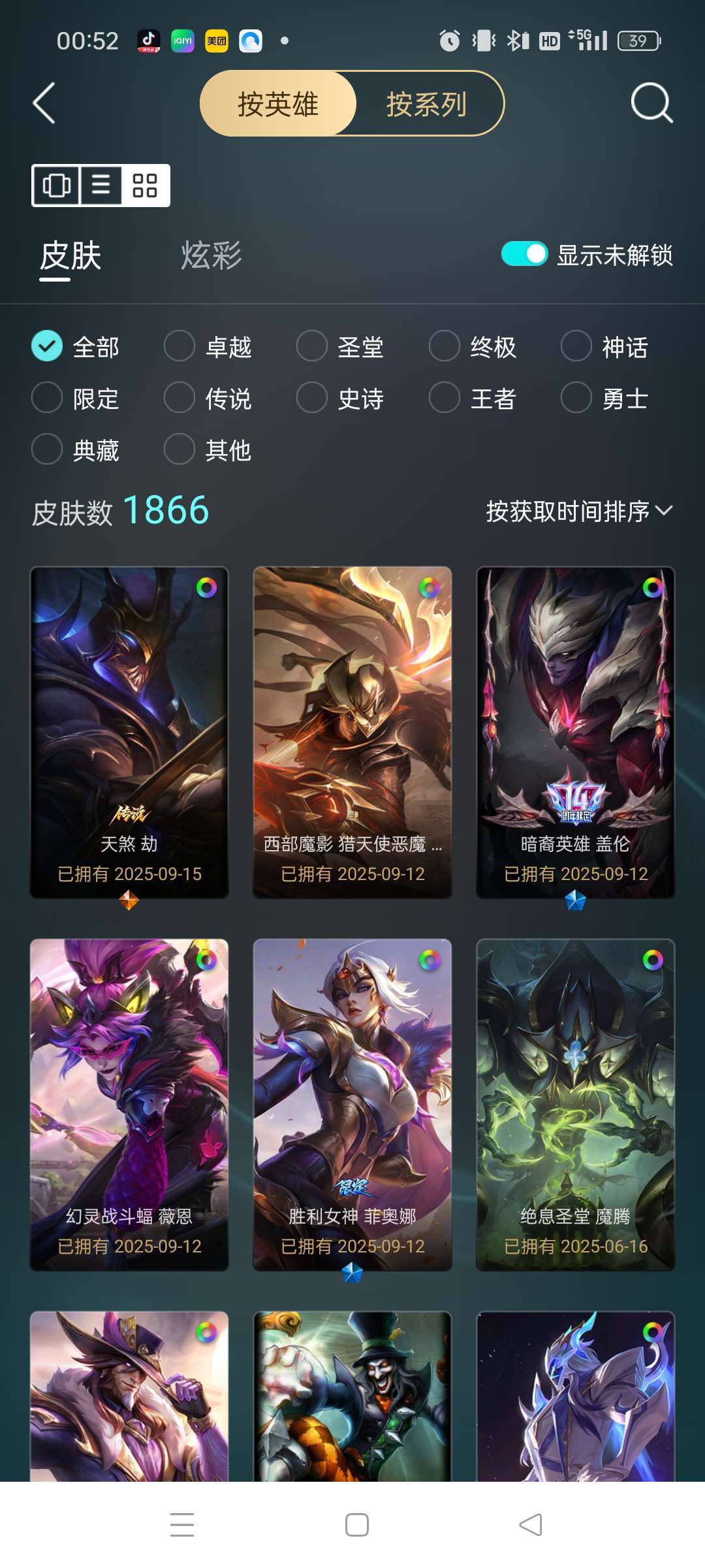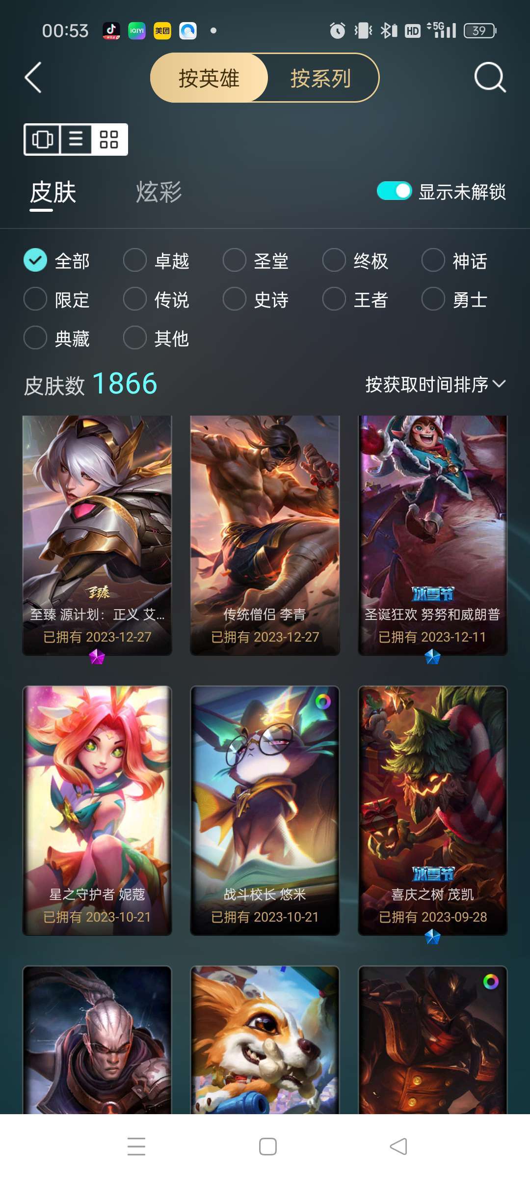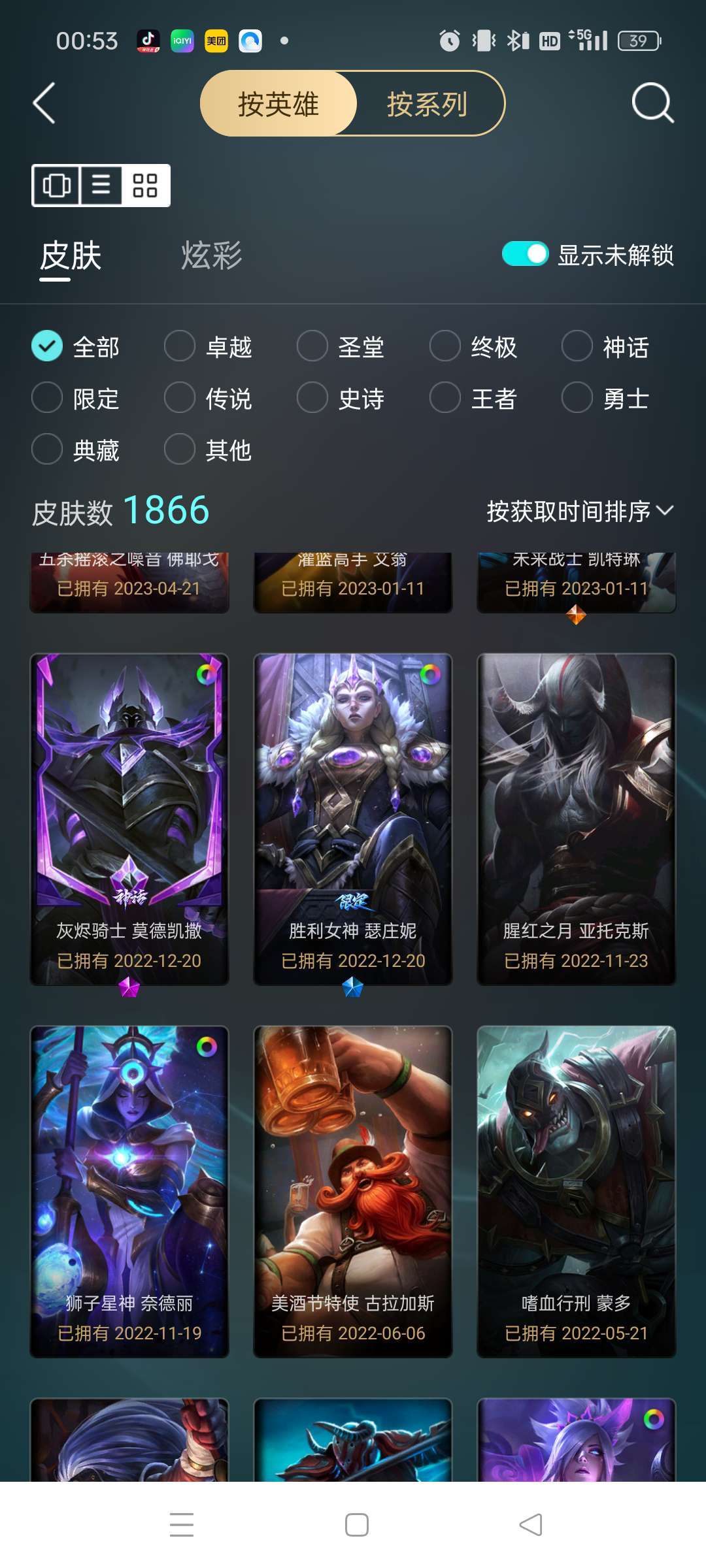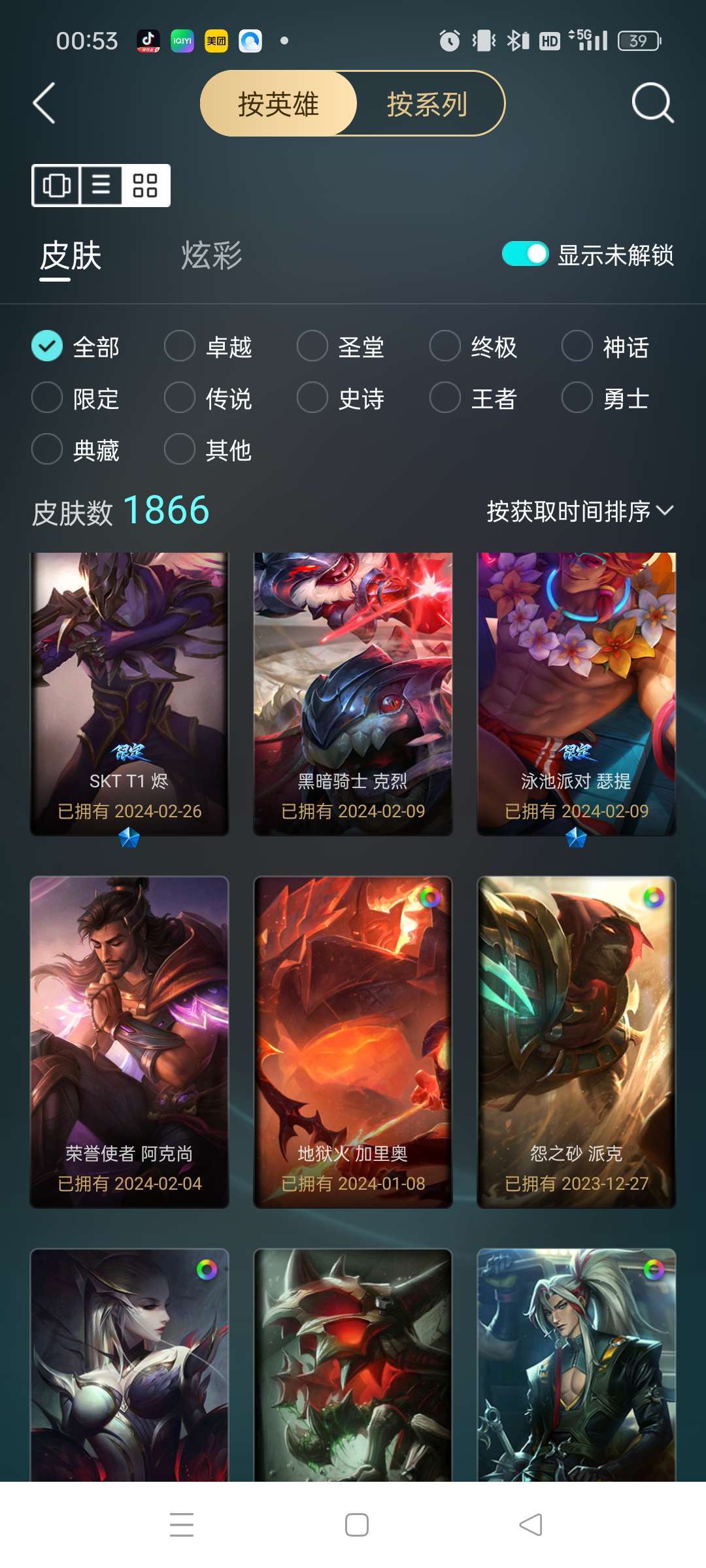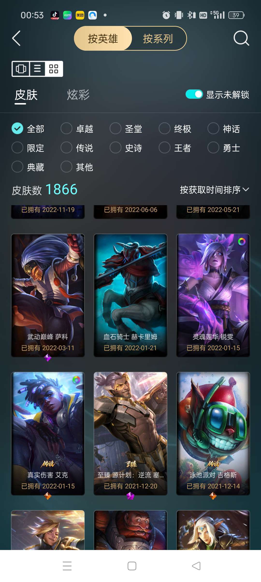 龙刀 龙猴 天煞劫 冠军之刃 以及众多至臻 限定皮肤