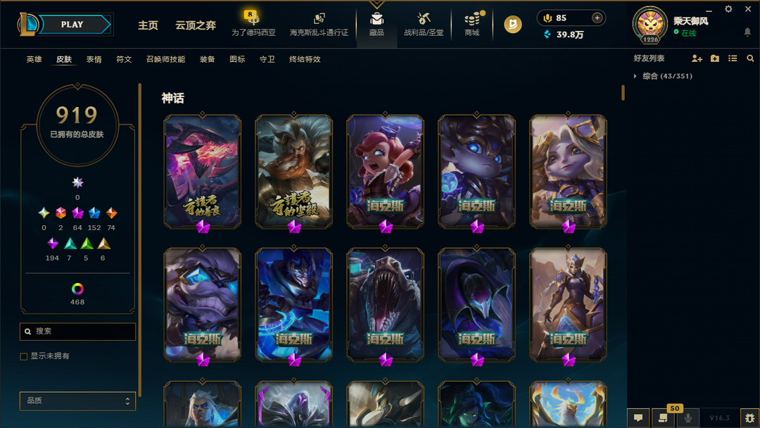██ 全英雄 1800皮丨70神话丨可排位丨龙瞎丨玫瑰男刀丨鼠年瑟提丨斩星御星创星丨莲华瑞文莉莉娅