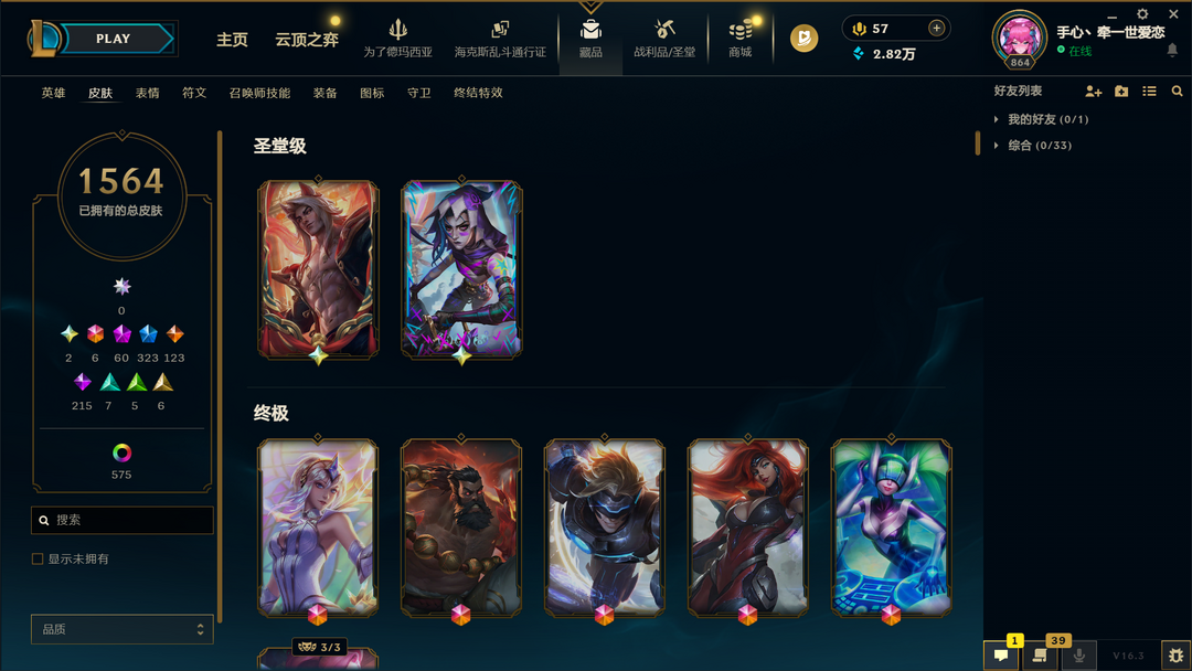 真实1600原皮❤圣堂双城金克斯❤圣堂瑟提❤灭世天煞劫❤圣天龙❤圣堂永恩❤双城之战全套❤冰雪节全套❤