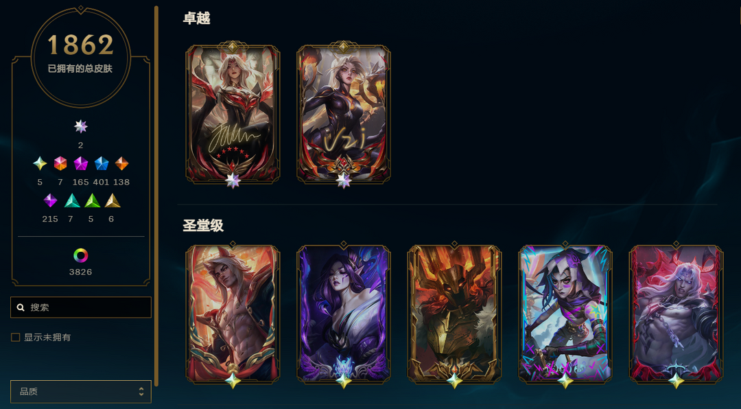 土豪ID5555⭐1862原皮⭐331臻彩⭐10色龙虾⭐全套年限⭐全圣堂⭐各种稀有限定皮