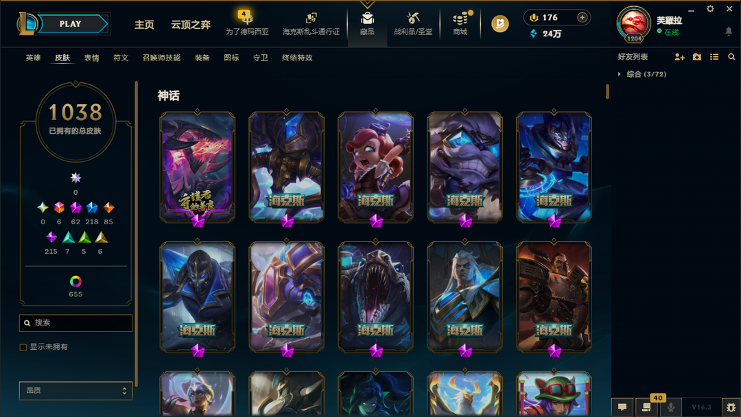 ~~出现异常~~多登入几次即可 ~~喜欢记得收藏~~可排位~~2500皮全英雄丨1038原皮715炫彩丨62神话/至臻/海克斯丨龙瞎丨斩星穿星丨冰原女警丨青年瑞兹丨大帝蛮王丨玉剑男女刀~~租之前尽量查一下游戏ID,确保段位是您需要,避免浪费您的时间~~请勿挂机逃跑故意送人头,谢谢合作,谢谢~~
