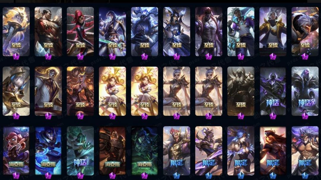 【LOL大王】1400P乄950原皮乄420炫彩乄26臻彩乄28神话乄165限定乄龙虾乄玉剑男刀