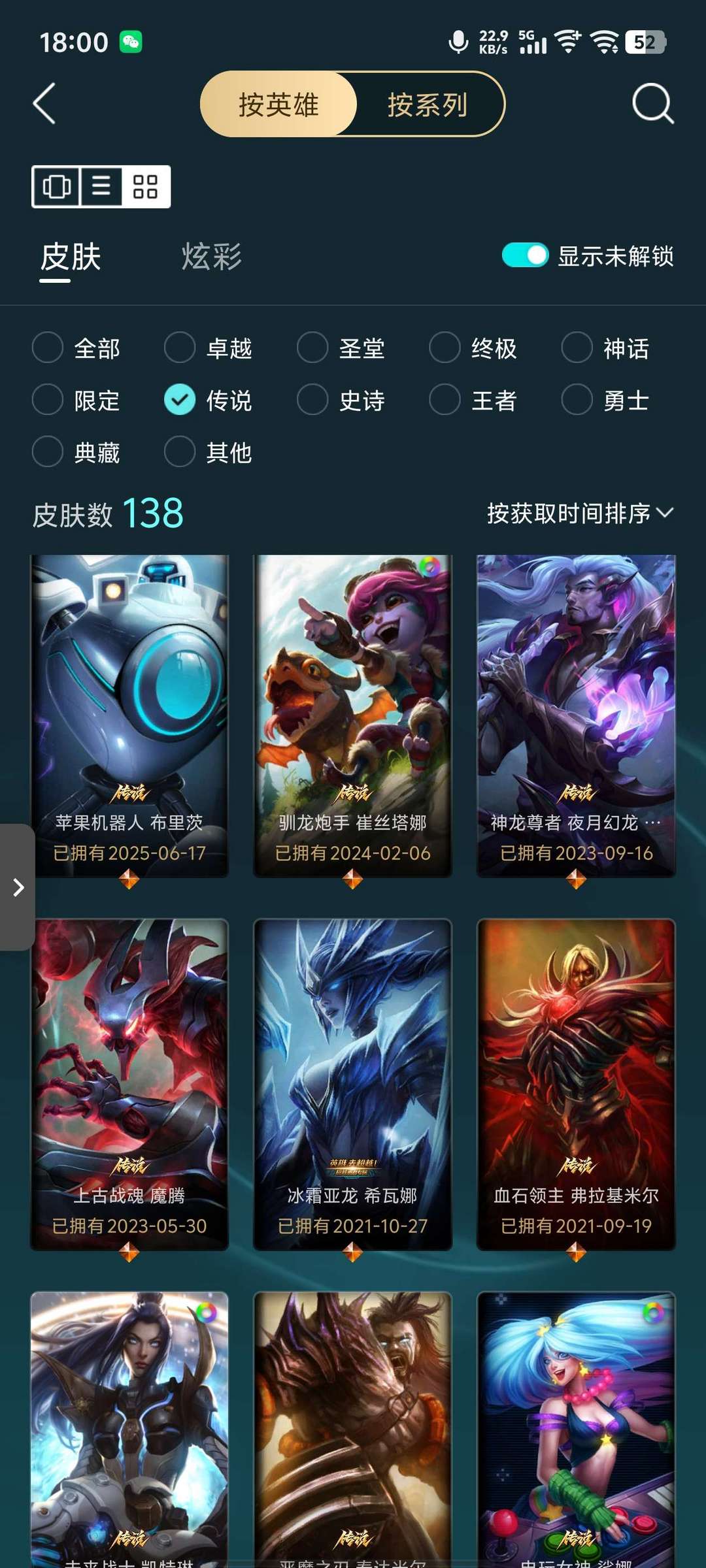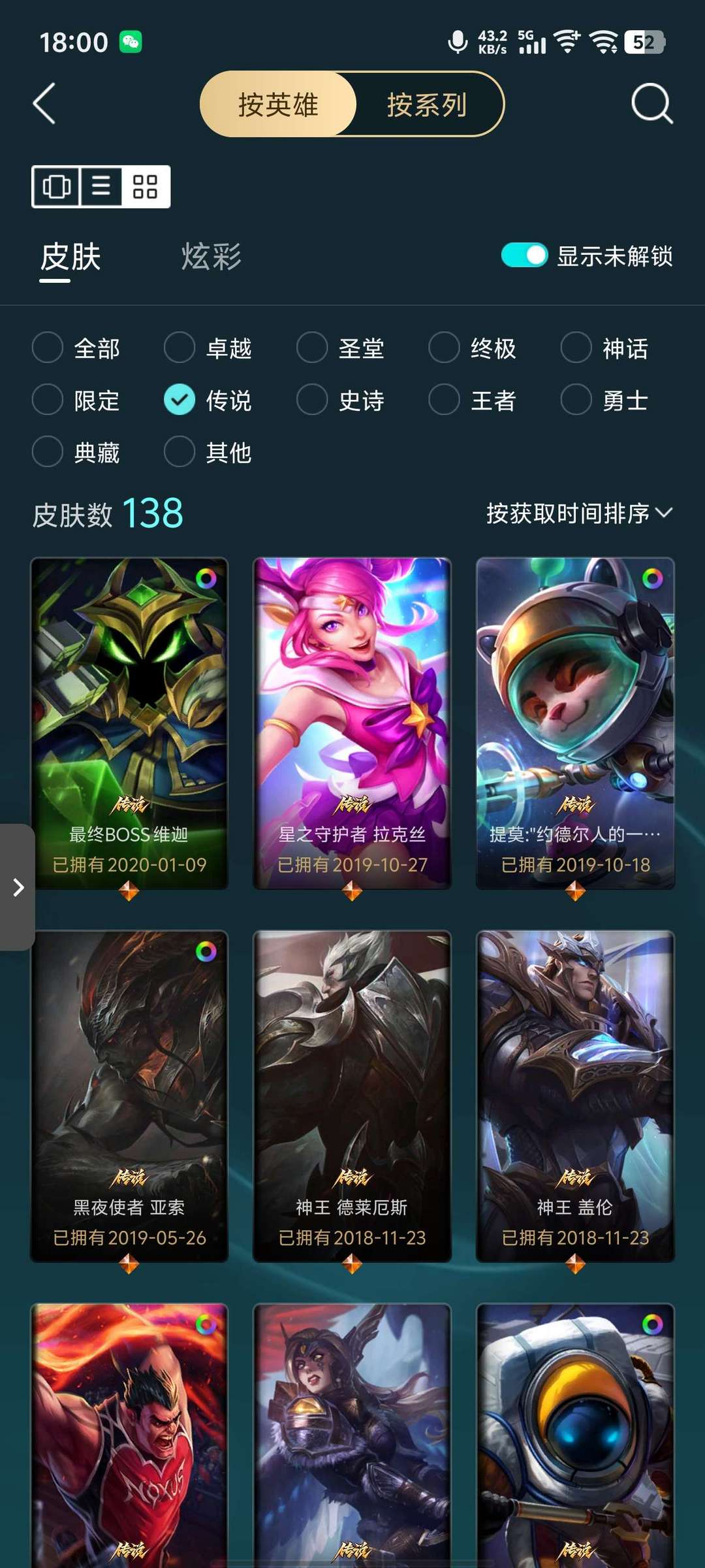 全英雄,2终极未来战士ez,灵魂守卫乌迪尔6神话33传说神王盖伦,诺手还有一些其他皮肤共268皮肤。
