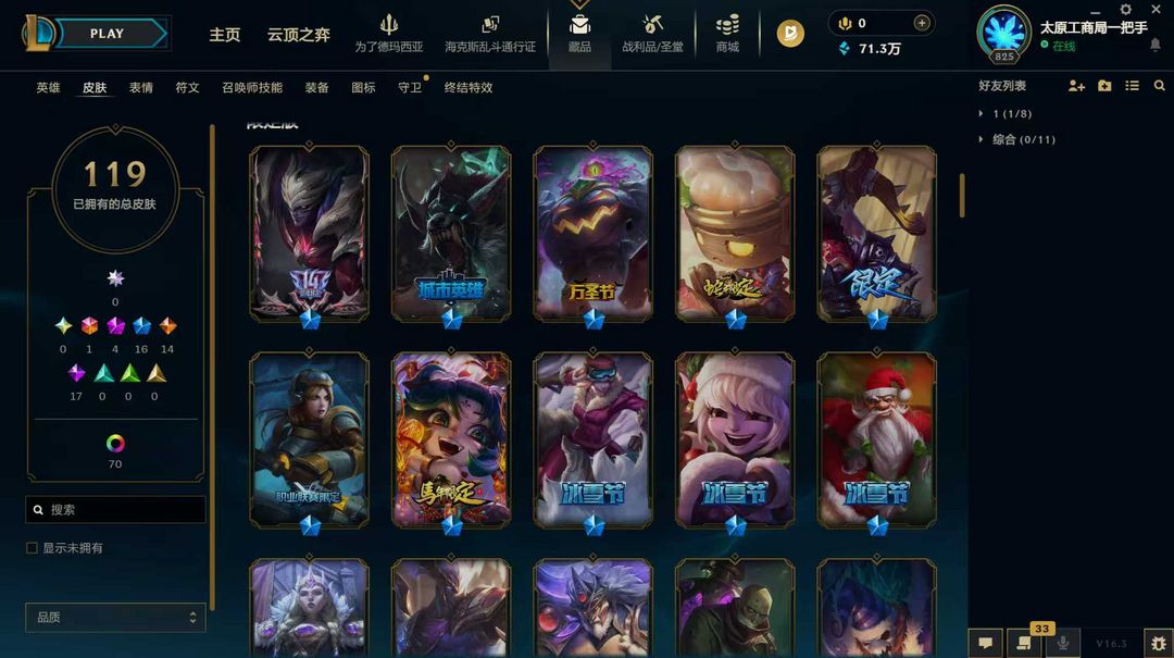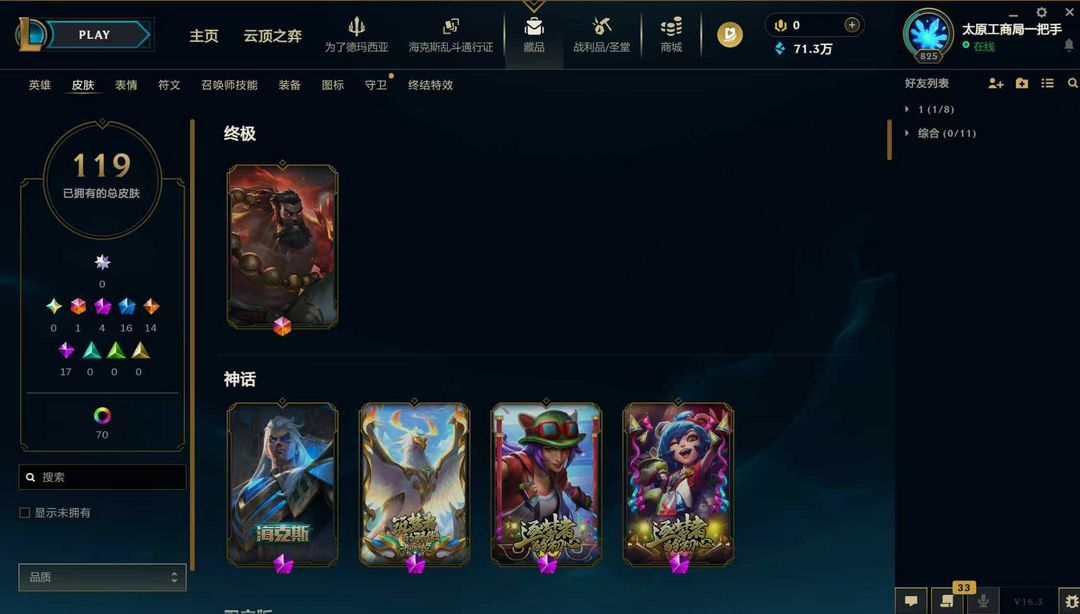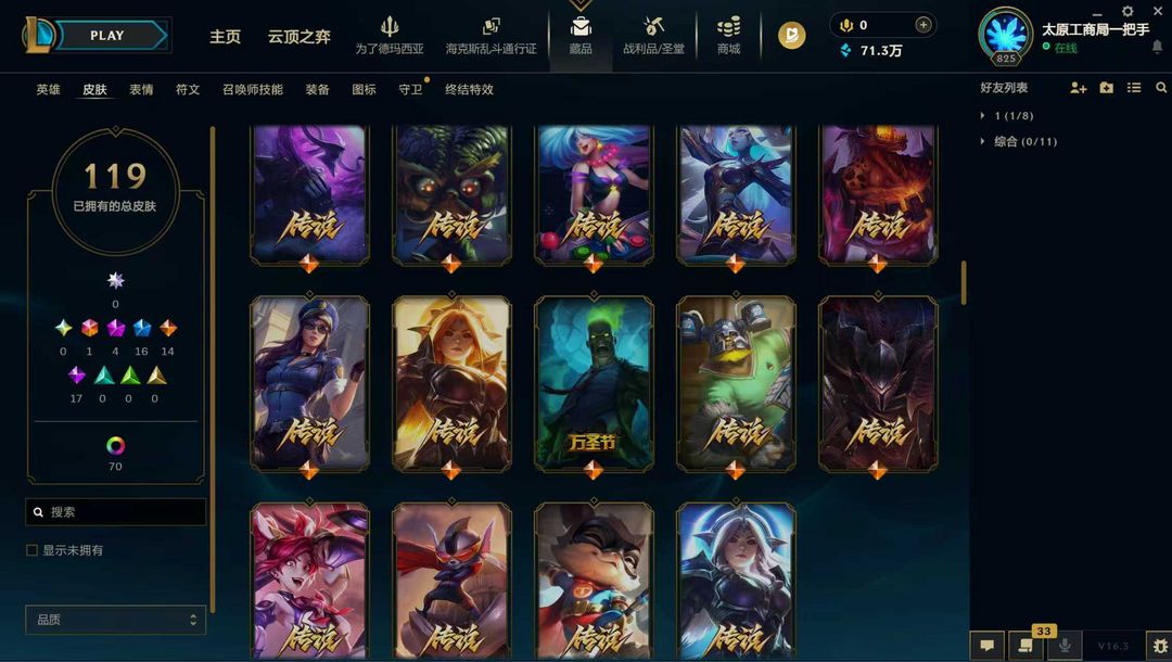 全英雄120皮❤魂守乌迪尔❤钢铁军团拉克丝❤糖果使徒稻草人❤丧尸火男❤海克斯乌鸦❤电玩琴女❤黎明奶妈
