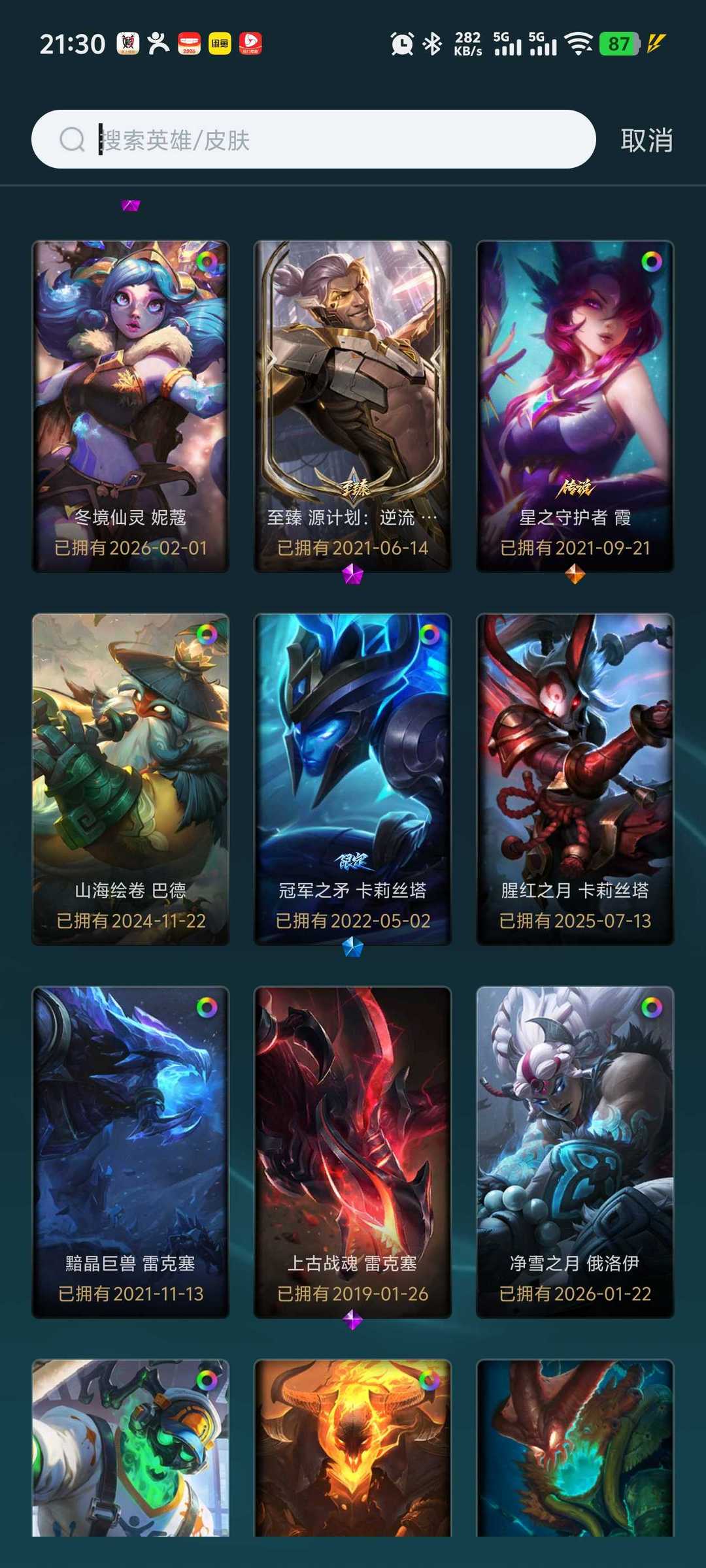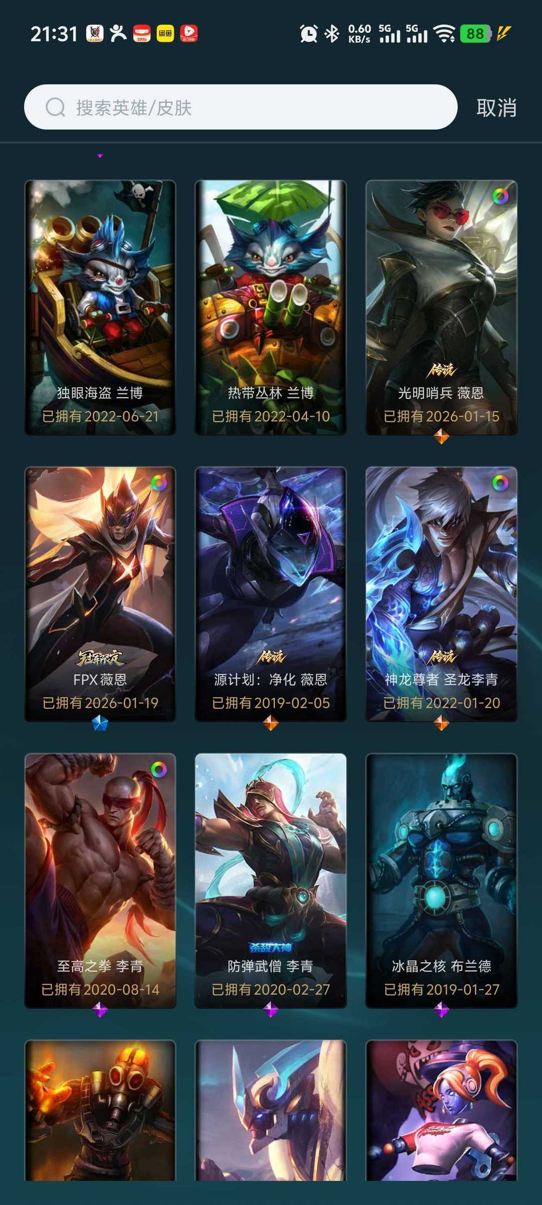 - 稀有皮肤拉满:冥王弗耶戈、奥德赛心之钢凯隐、至臻至高天奎桑提、至臻神龙尊者炎龙瑟提、EDG佛耶戈冠军限定、FPX薇恩冠军限定、替父从军花木兰等绝版皮肤,让你每局都有排面。